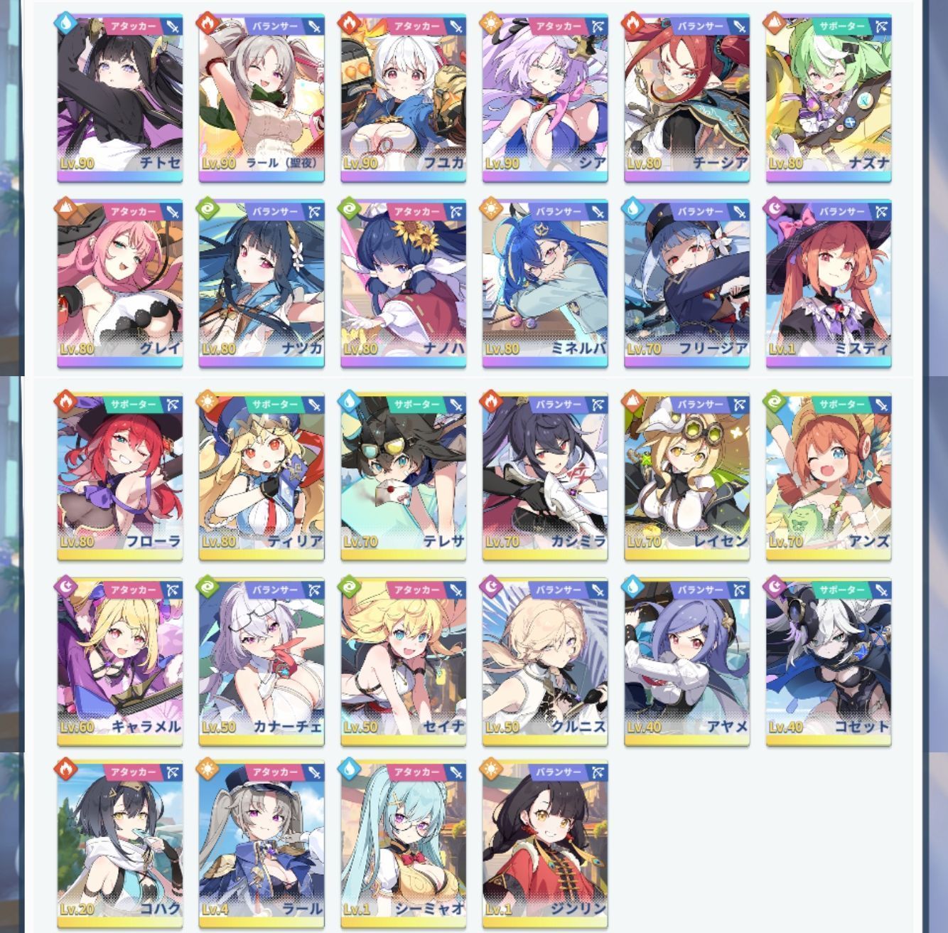 アカウント特定防止といった観点から、主なキャラクターを抜粋して記載させていただいております。