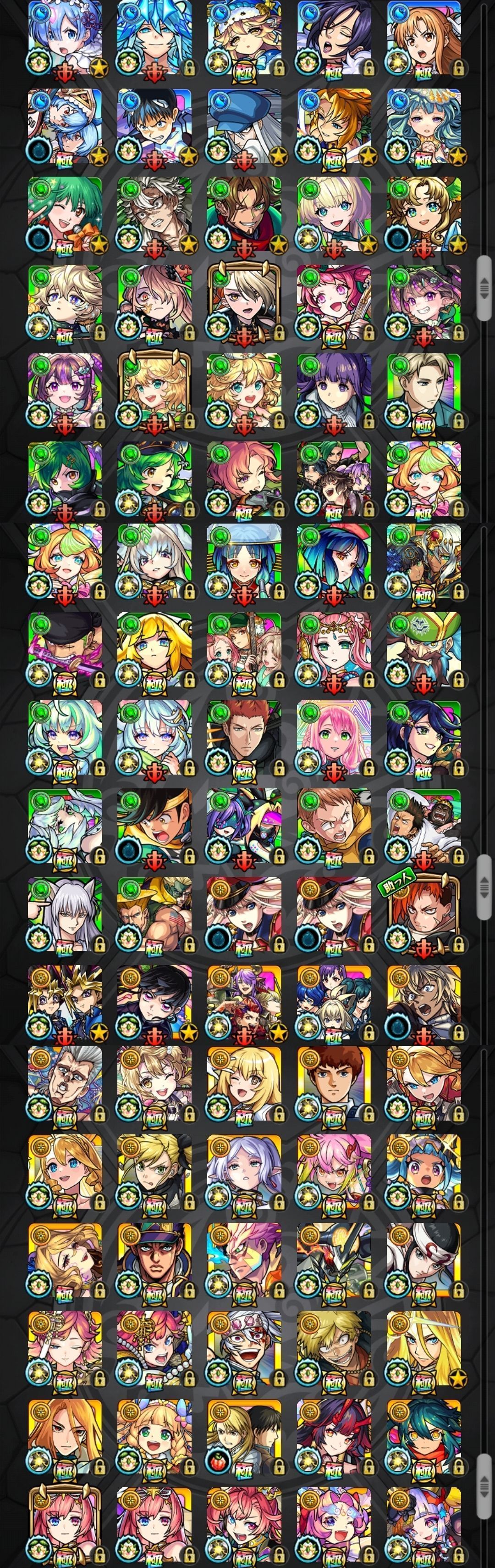 アカウント特定防止といった観点から、主なモンスターを抜粋して記載させていただいております。
