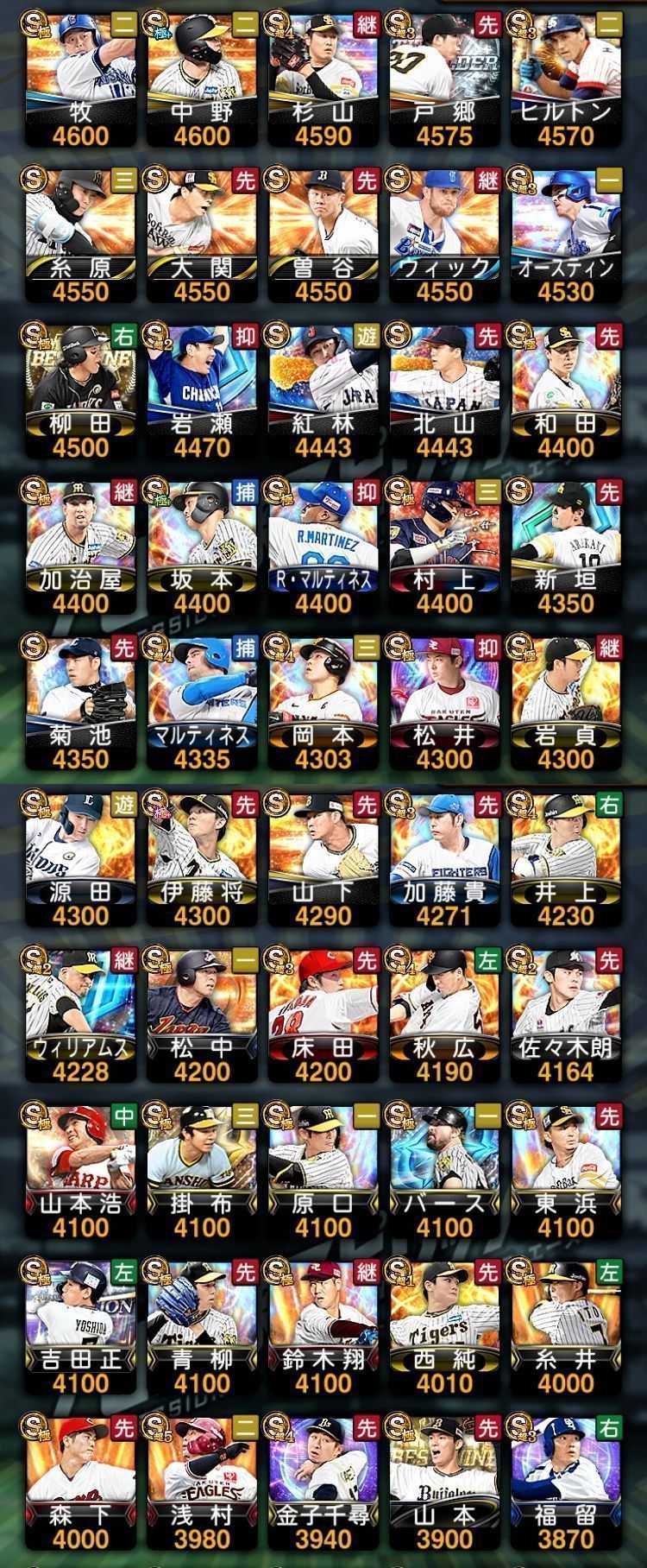 アカウント特定防止といった観点から、主な選手を抜粋して記載させていただいております。