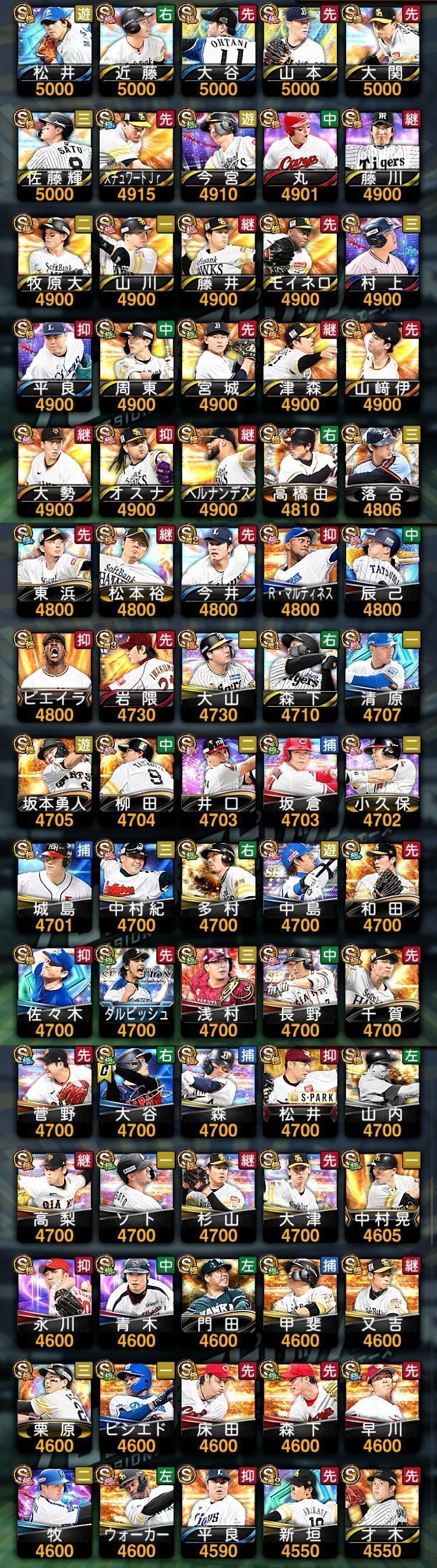 アカウント特定防止といった観点から、主な選手を抜粋して記載させていただいております。