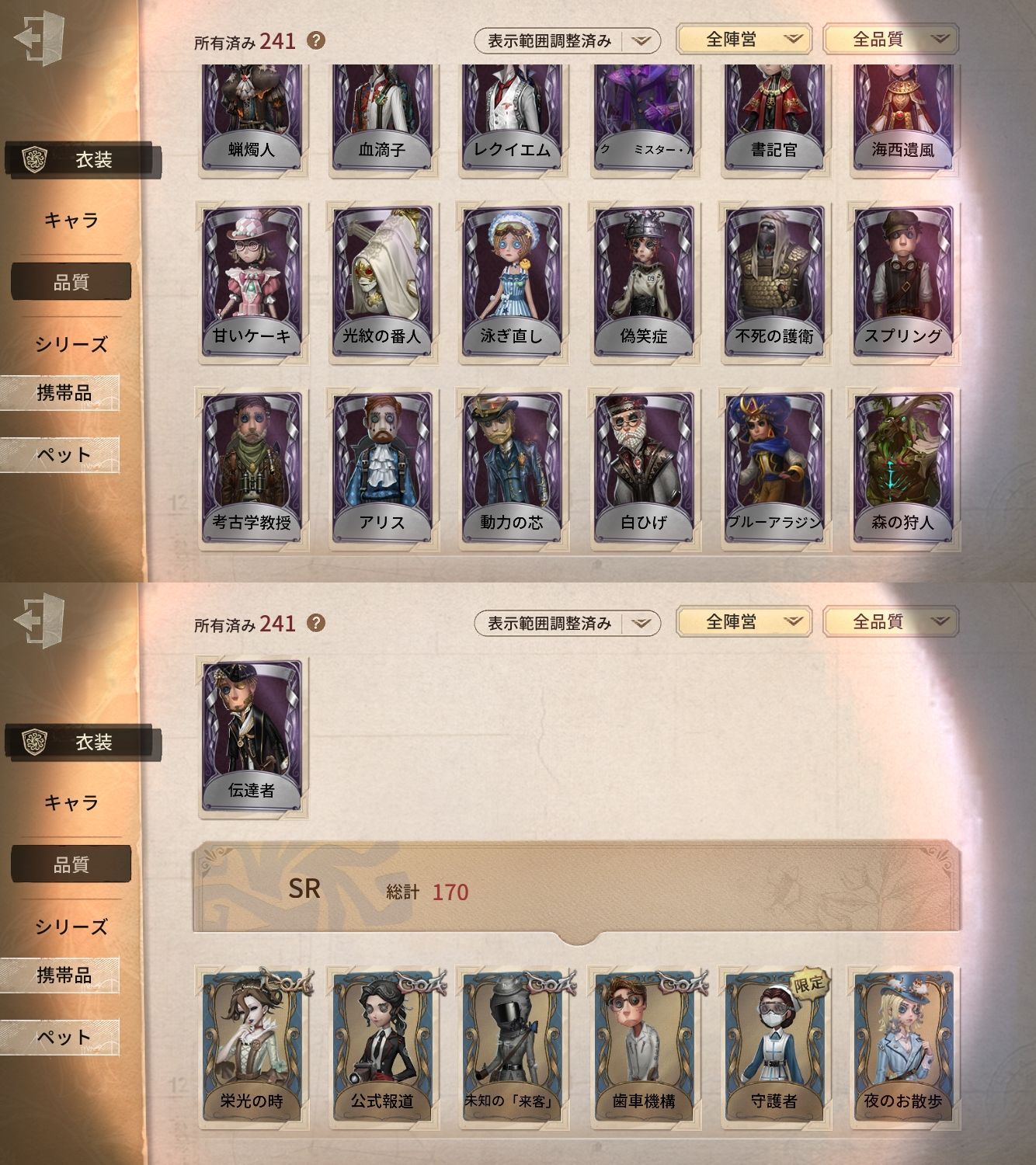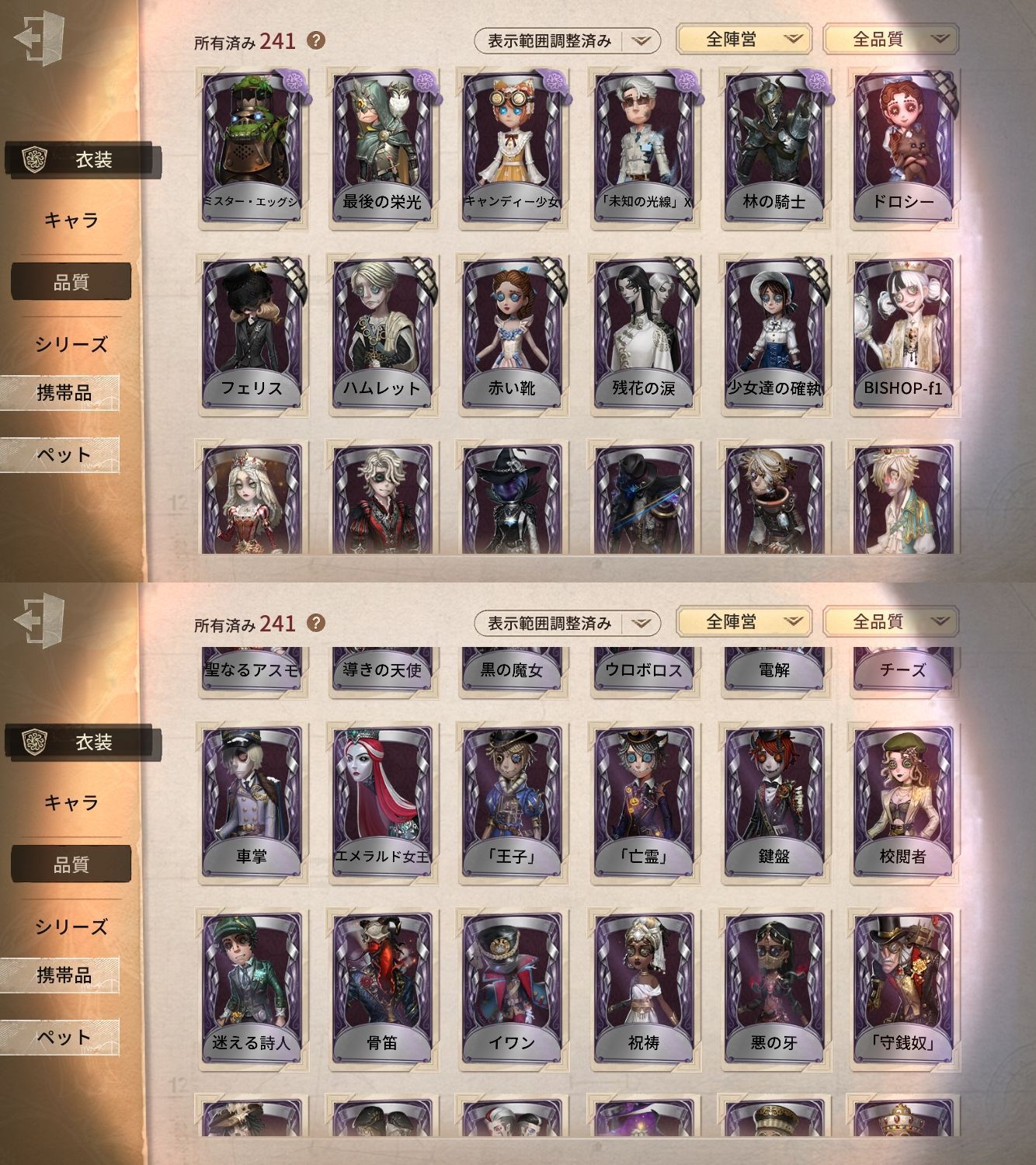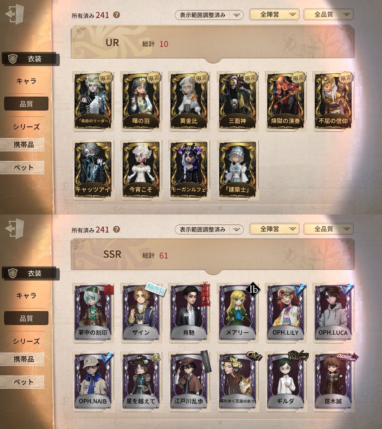 アカウント特定防止といった観点から、主な衣装を抜粋して記載させていただいております。