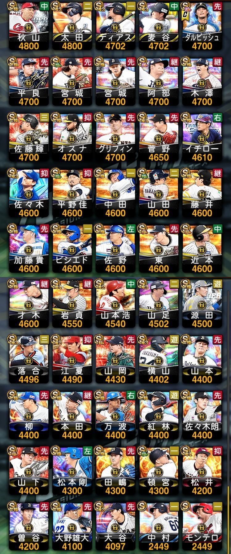 アカウント特定防止といった観点から、主な選手を抜粋して記載させていただいております。