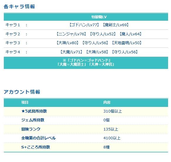 ※冒険ランクなども一部ぼかして記載しています。