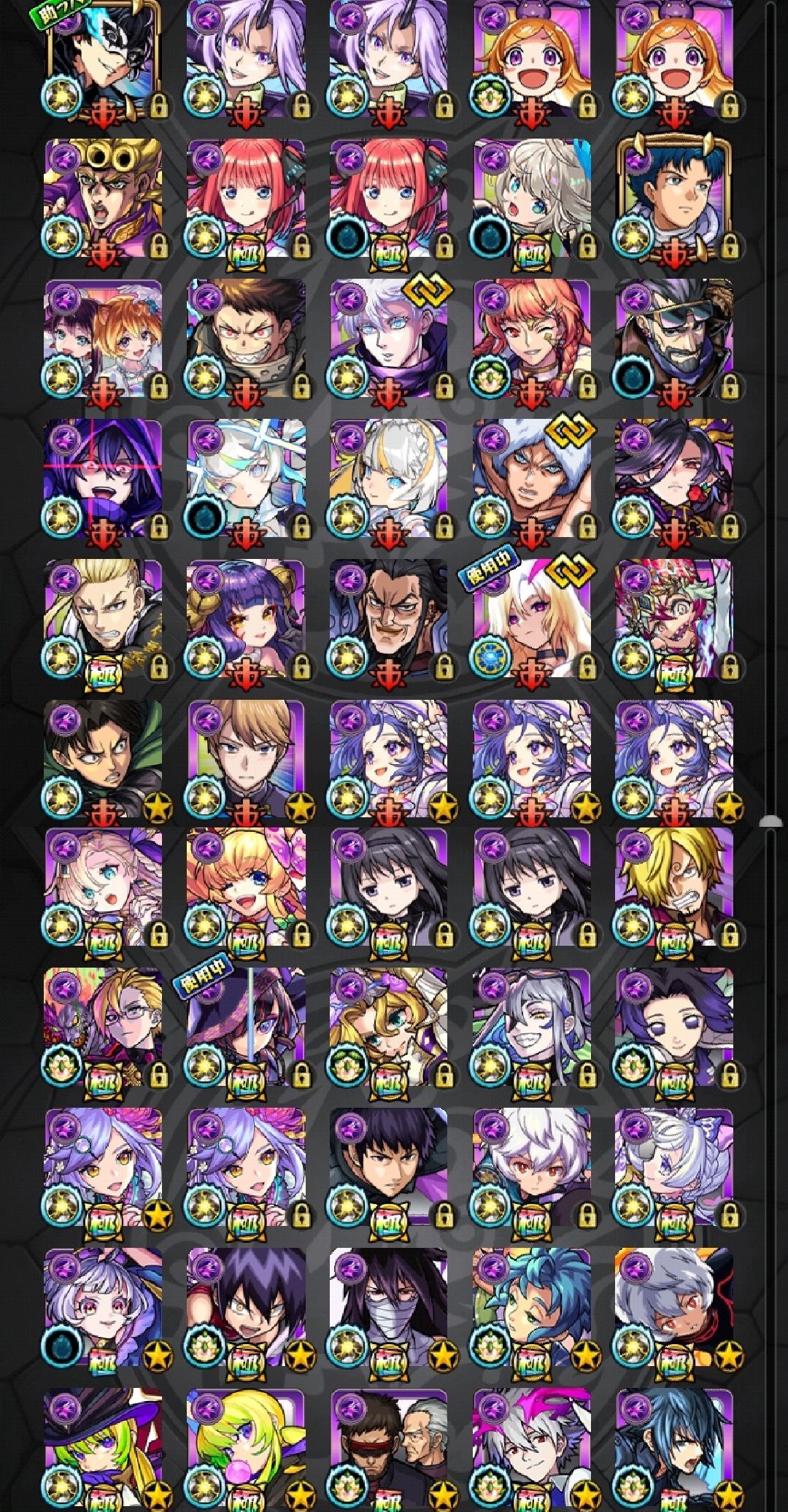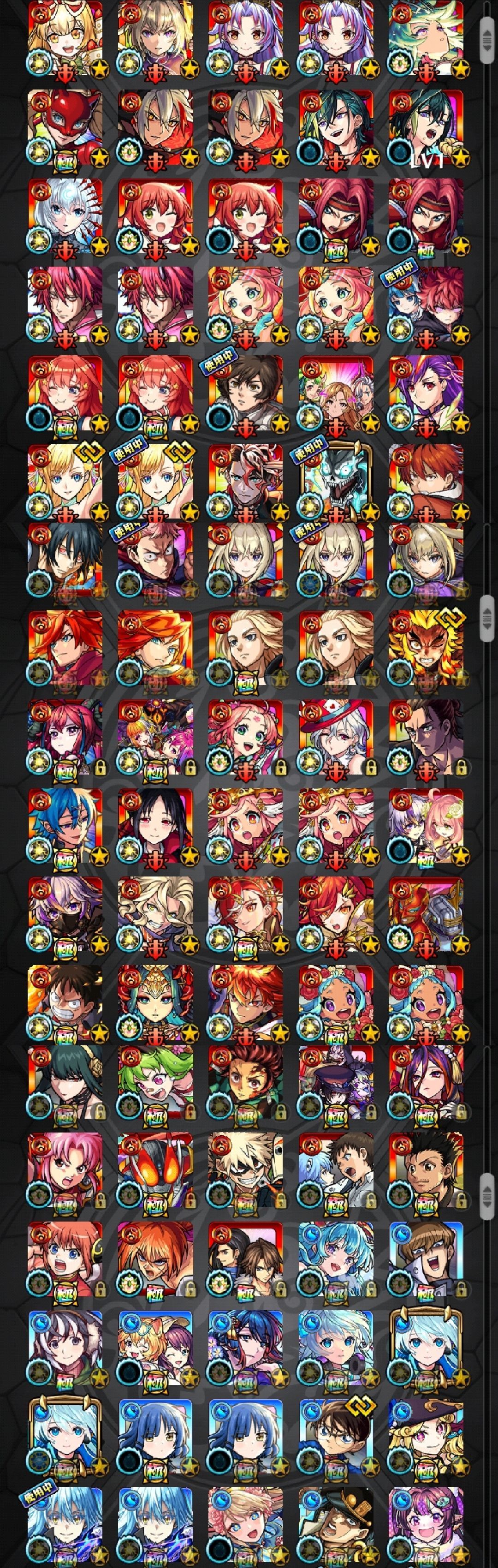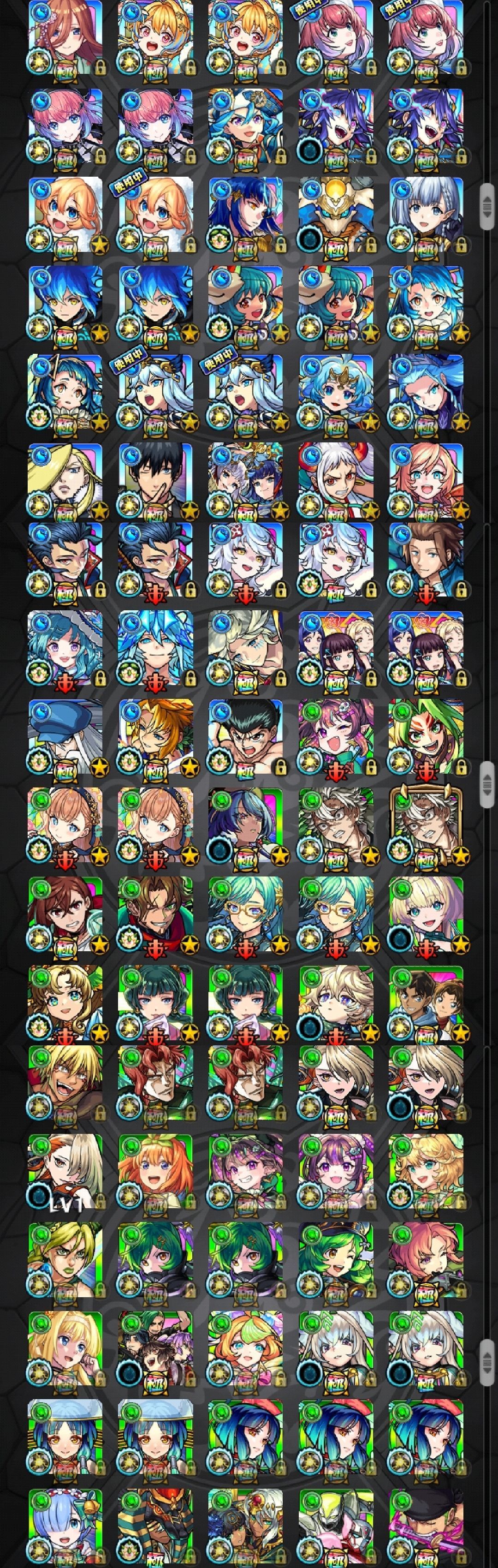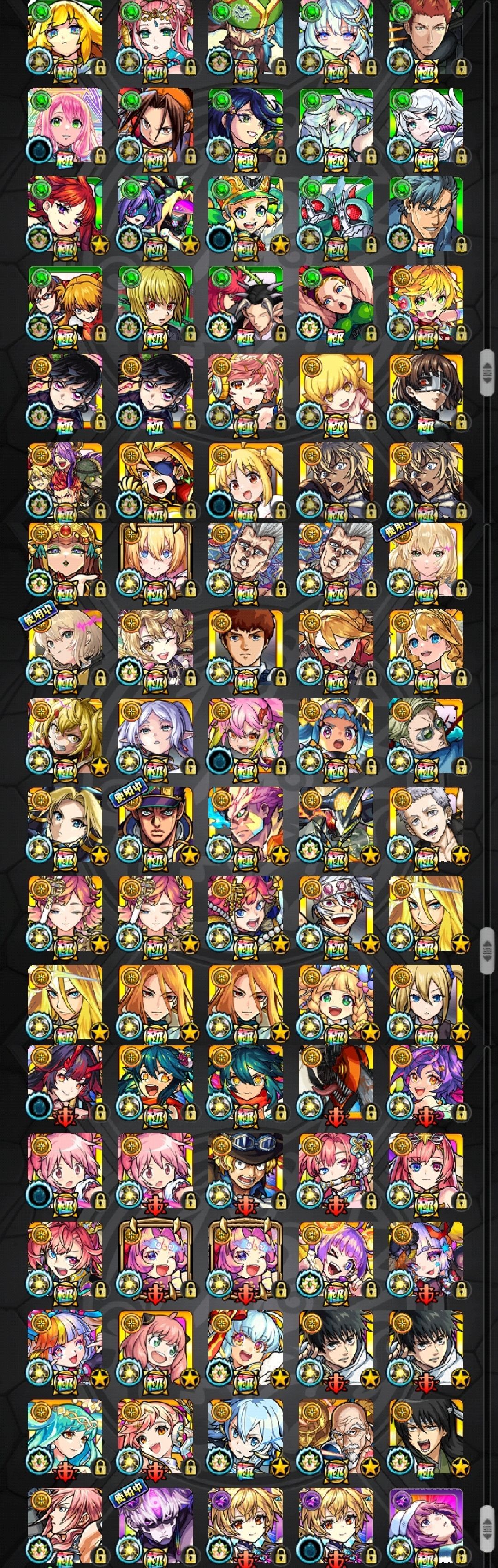 アカウント特定防止といった観点から、主なモンスターを抜粋して記載させていただいております。