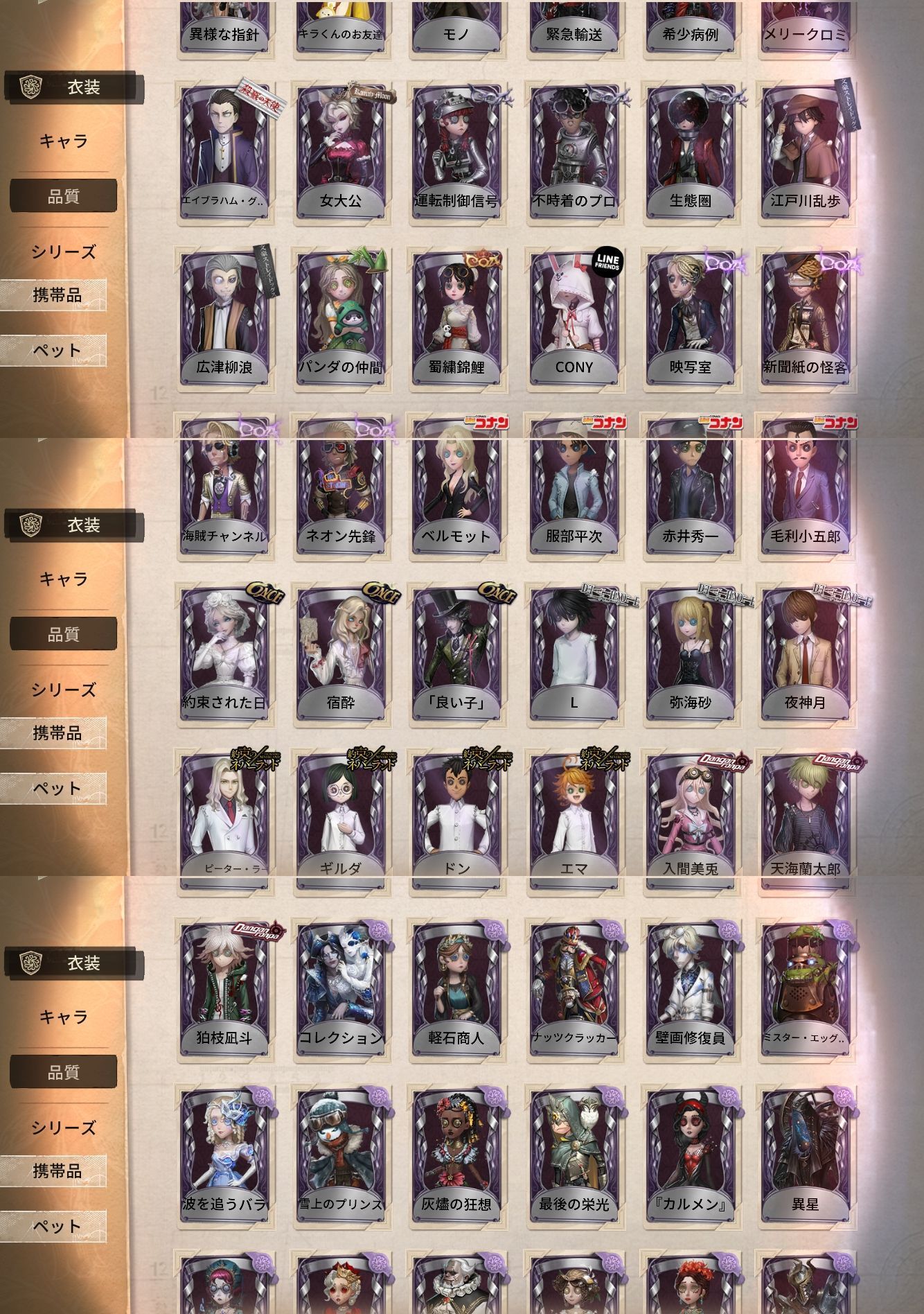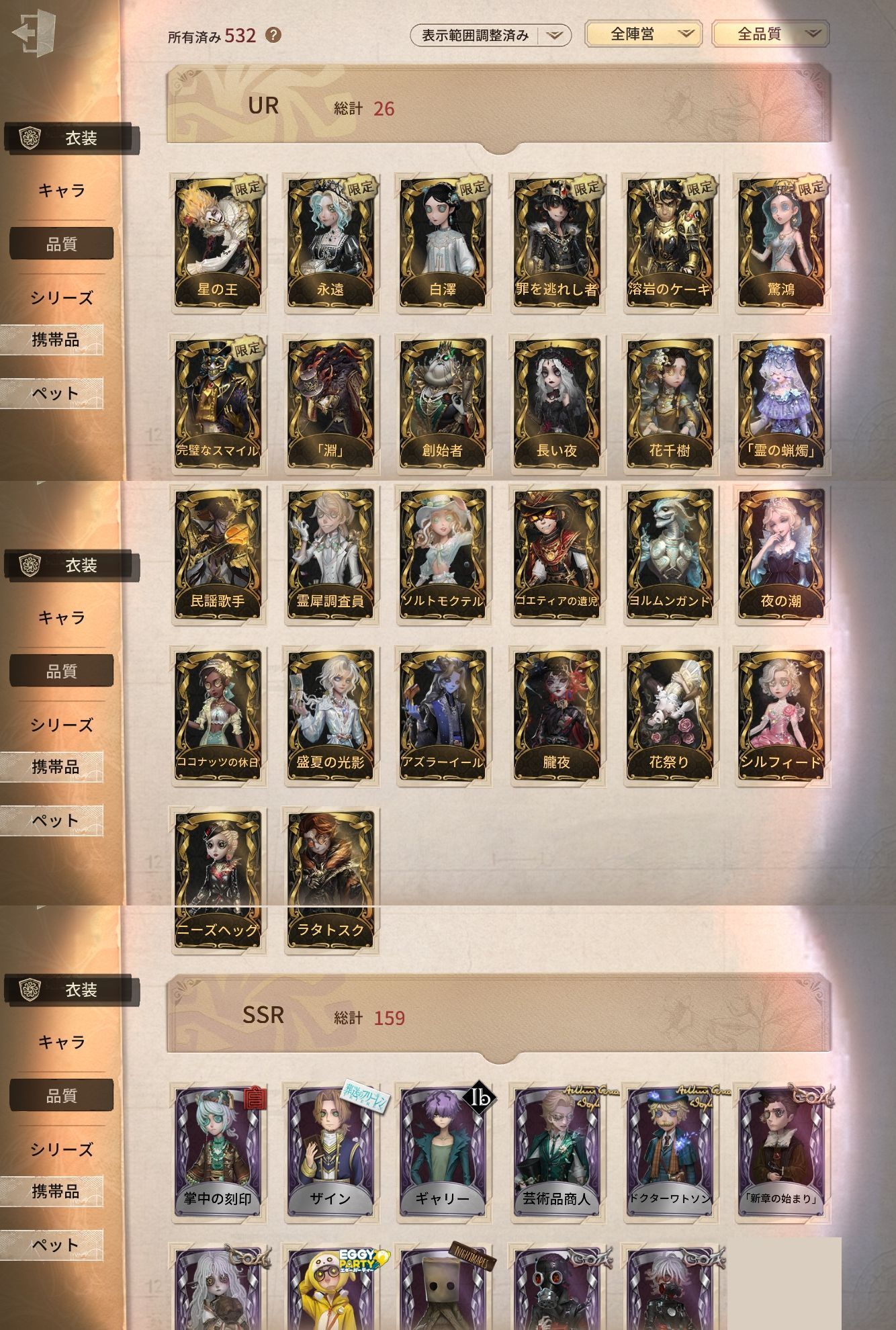 アカウント特定防止といった観点から、主な衣装を抜粋して記載させていただいております。