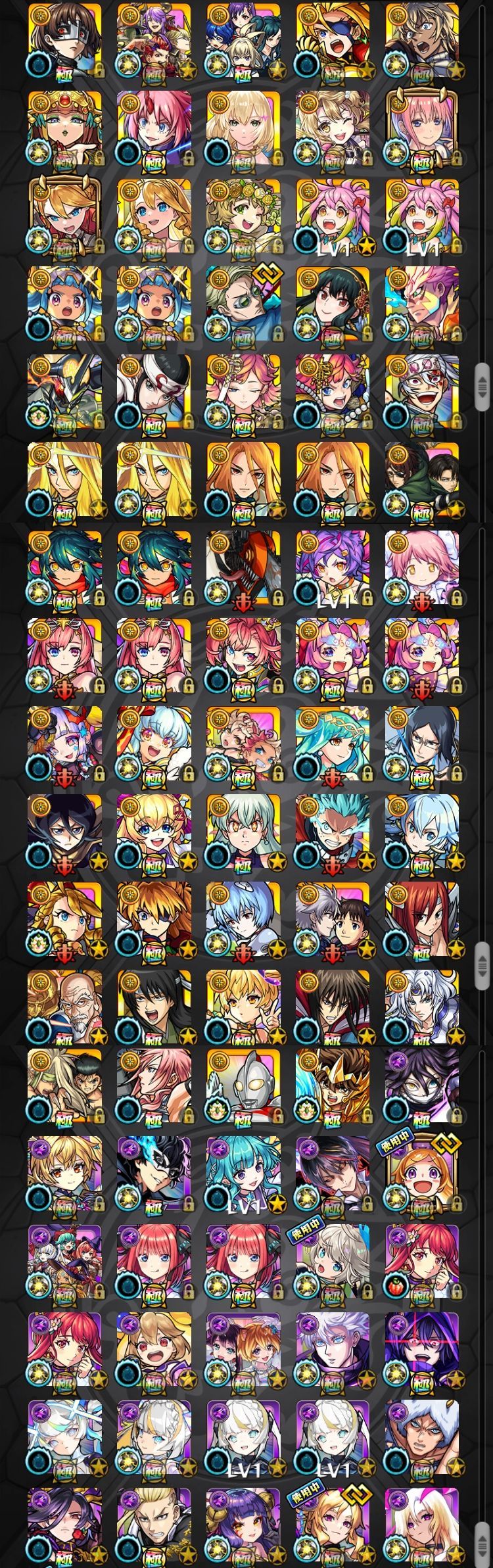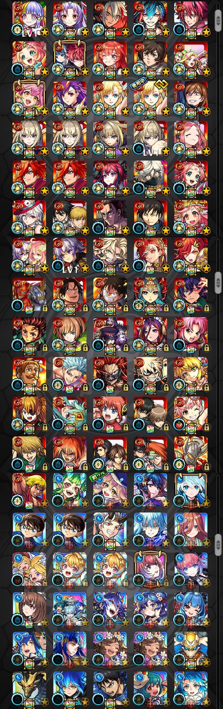 アカウント特定防止といった観点から、主なモンスターを抜粋して記載させていただいております。