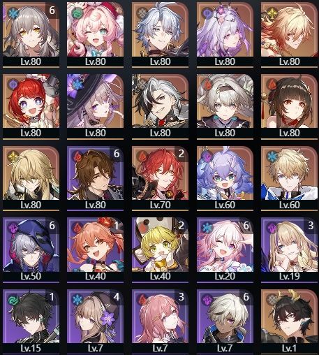 下記のようなキャラクター・光円錐を所持しております。(一部抜粋)