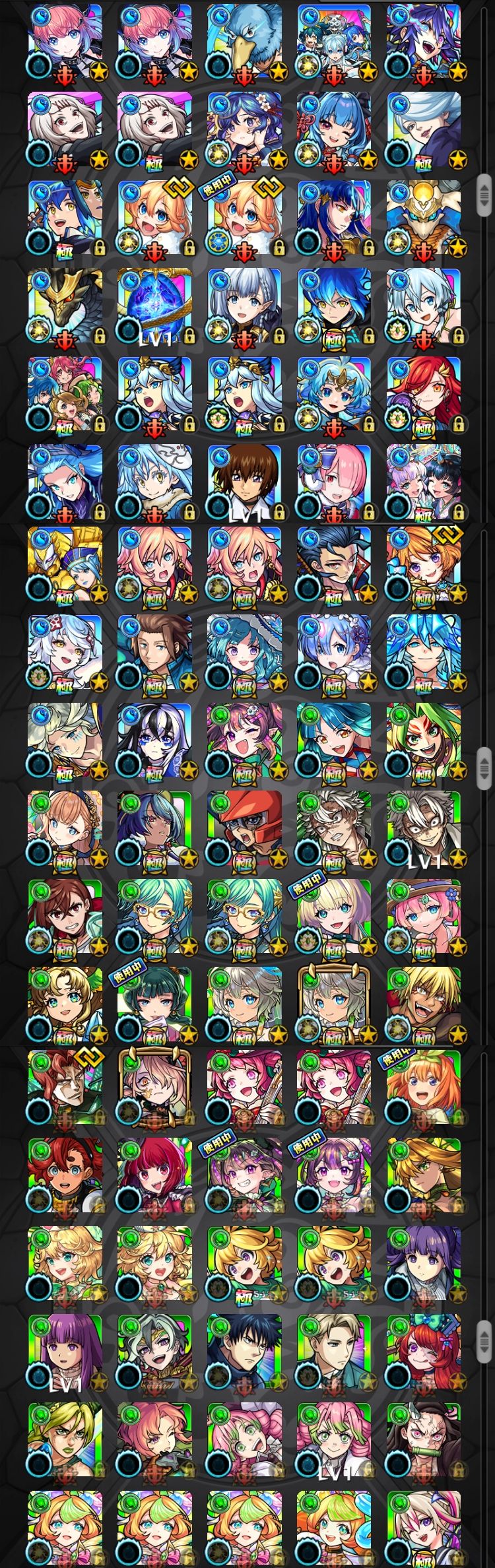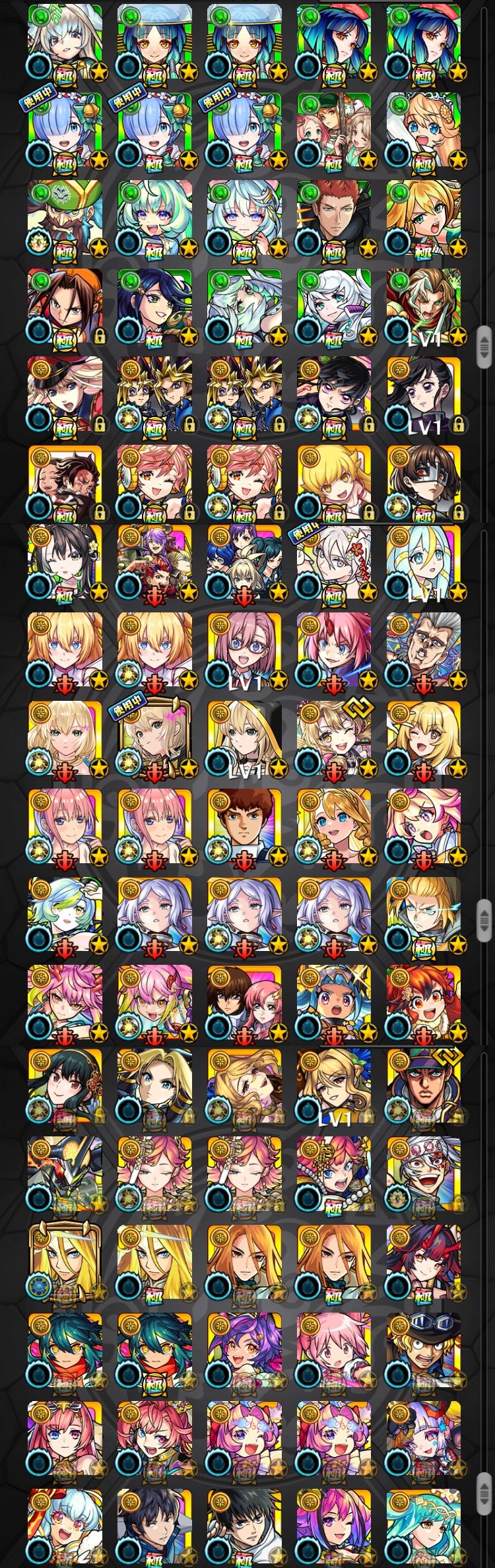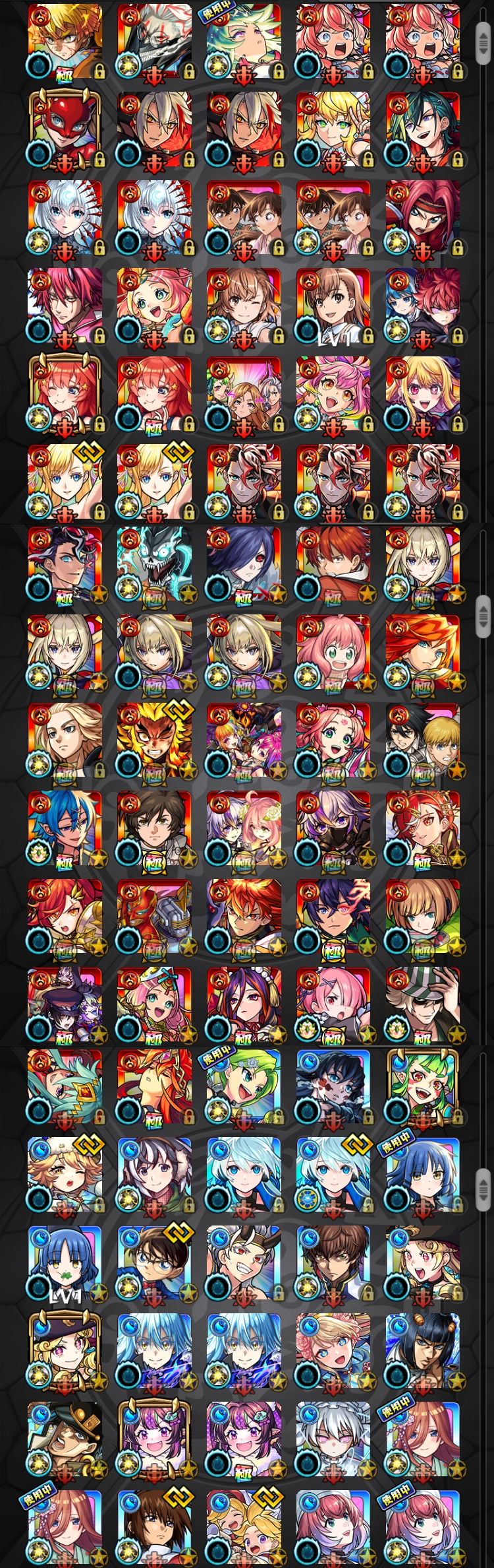 アカウント特定防止といった観点から、主なモンスターを抜粋して記載させていただいております。