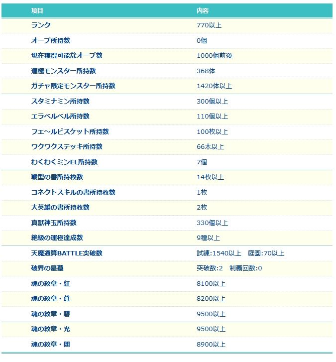 アカウント特定防止といった観点から、主なモンスターを抜粋して記載させていただいております。