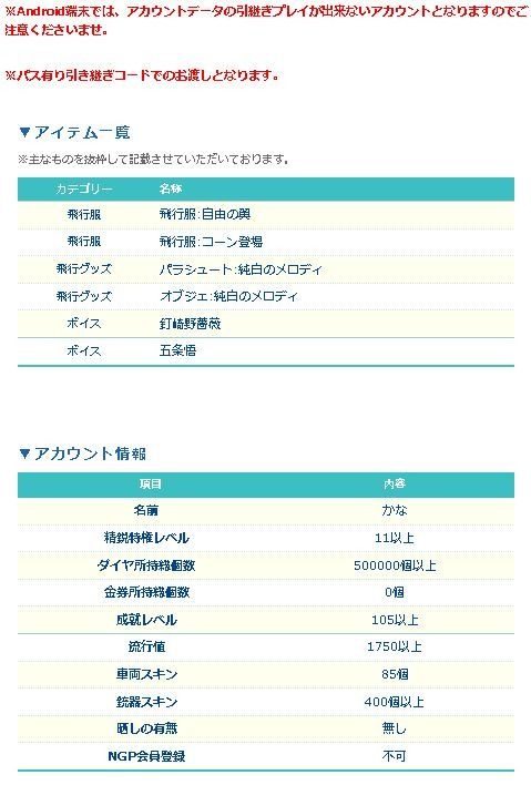 引退した一般プレイヤーから、直接マツブシが買取した廃課金アカウントとなります!