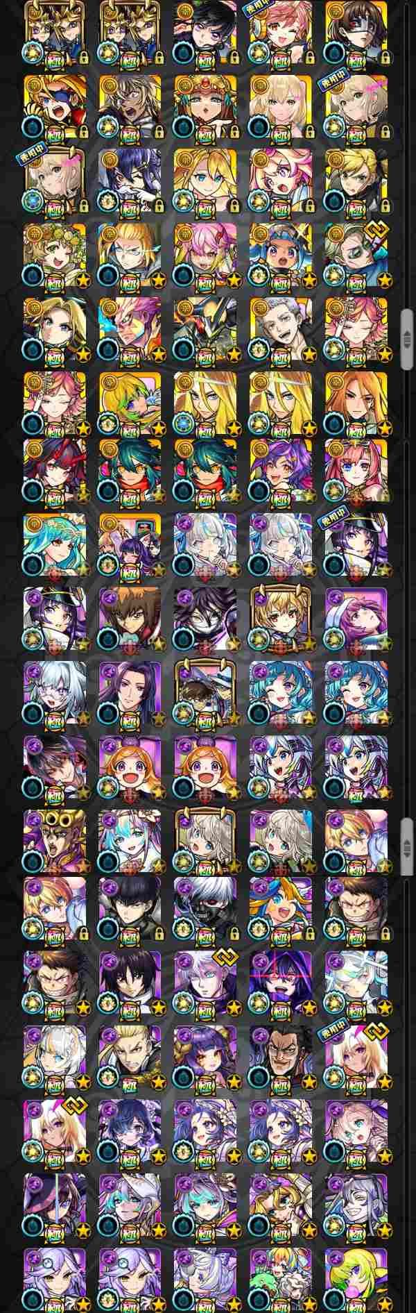 アカウント特定防止といった観点から、主なモンスターを抜粋して記載させていただいております。