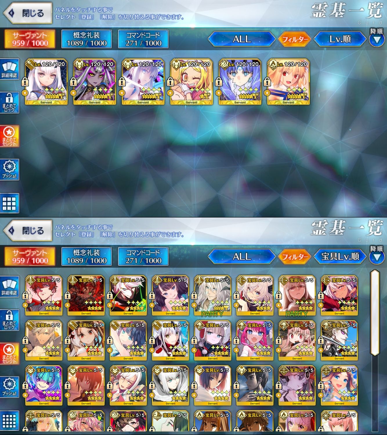 星5サーヴァントの数は累計入手数です。