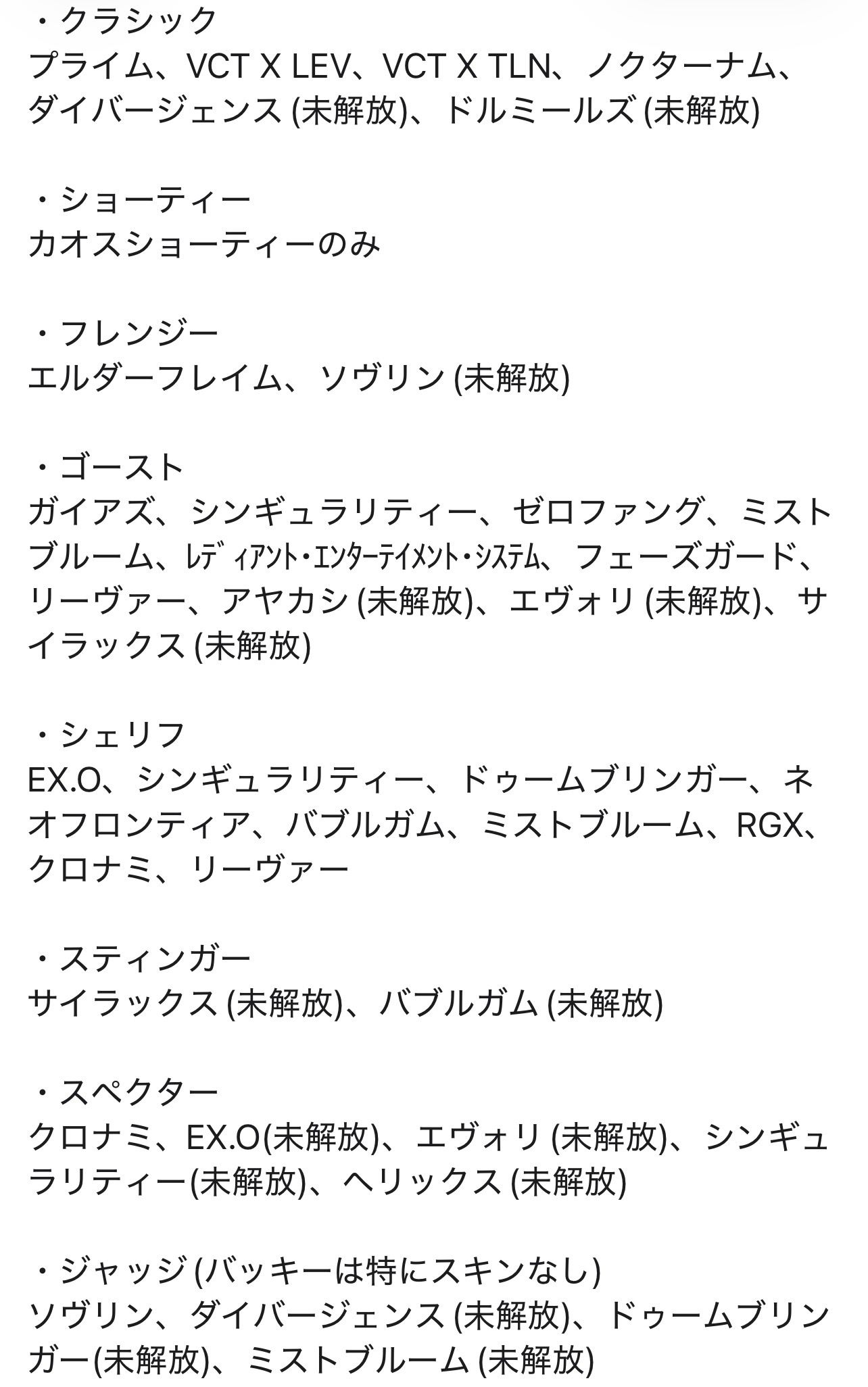 掲載されていない部分のスキンやバディについてご質問があればお答えいたします。