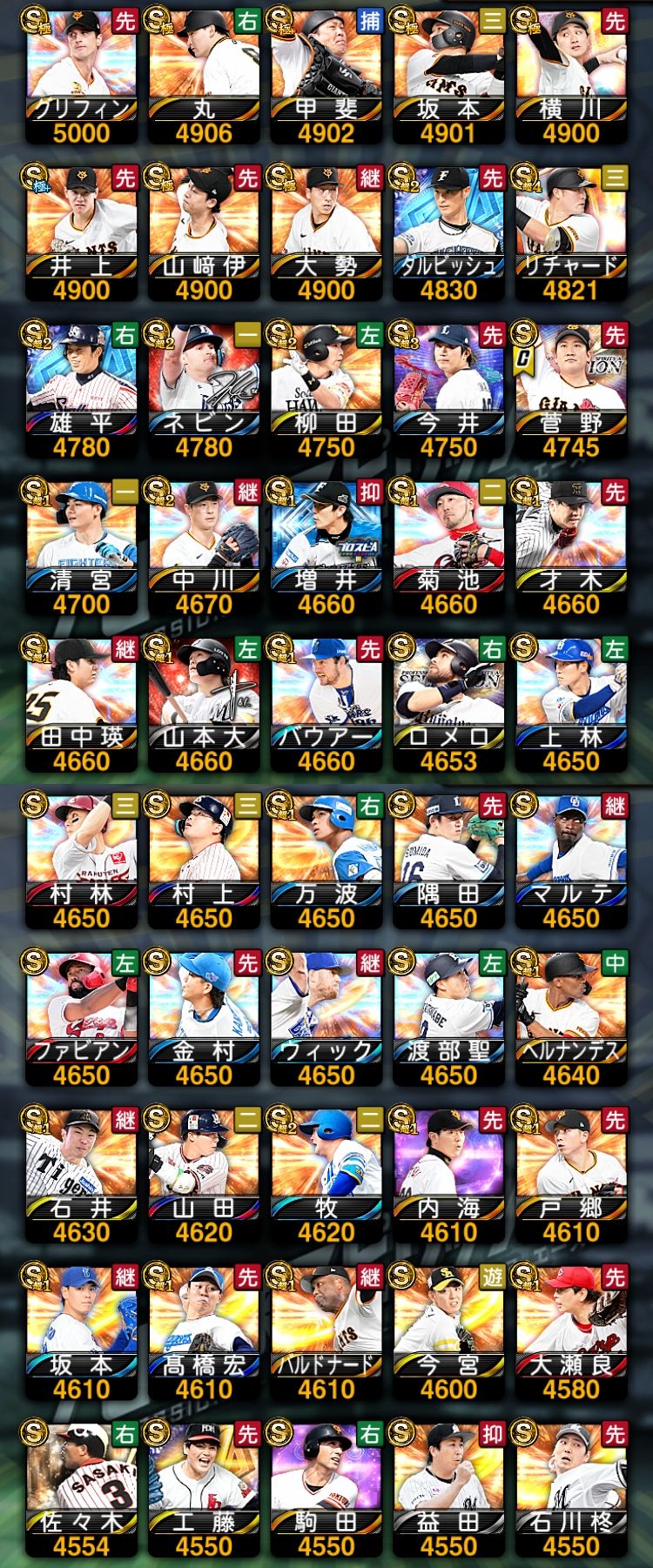 アカウント特定防止といった観点から、主な選手を抜粋して記載させていただいております。