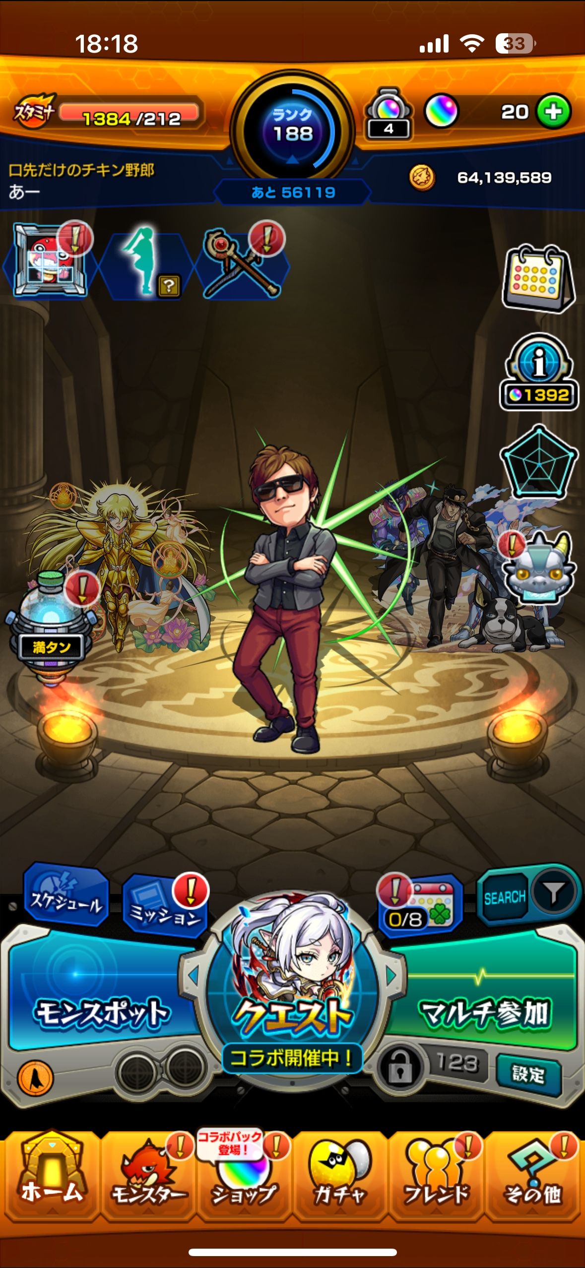 初期のHIKAKINコラボキャラを所持しています。古参アカウントの証であり、今ではまず見かけない希少な存在です。