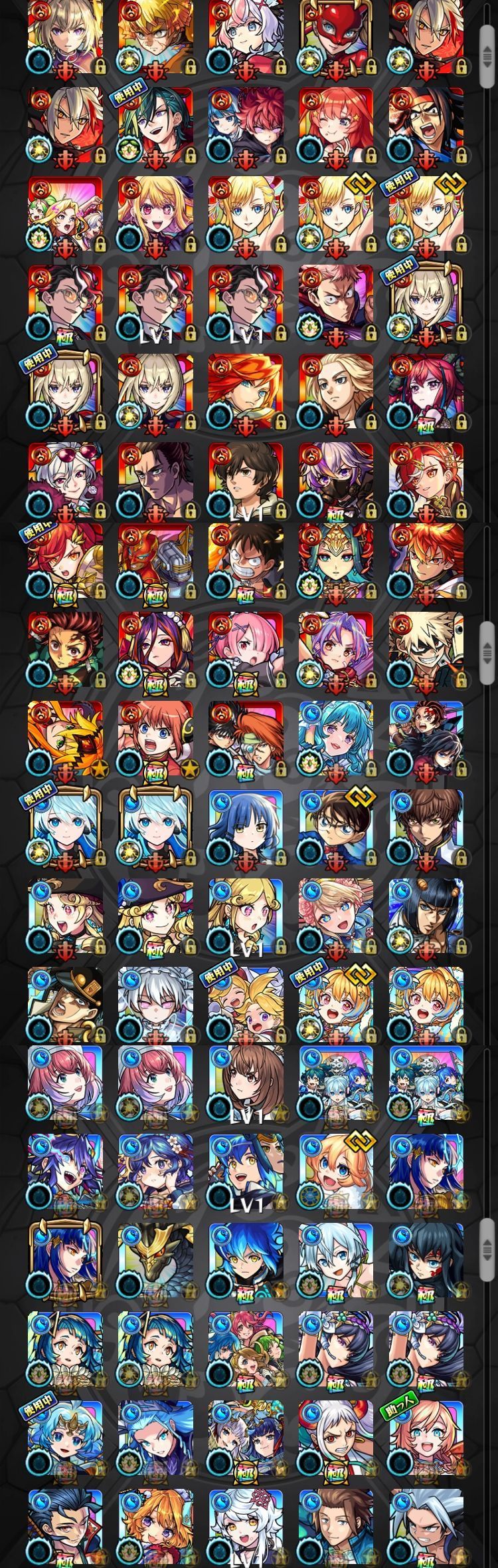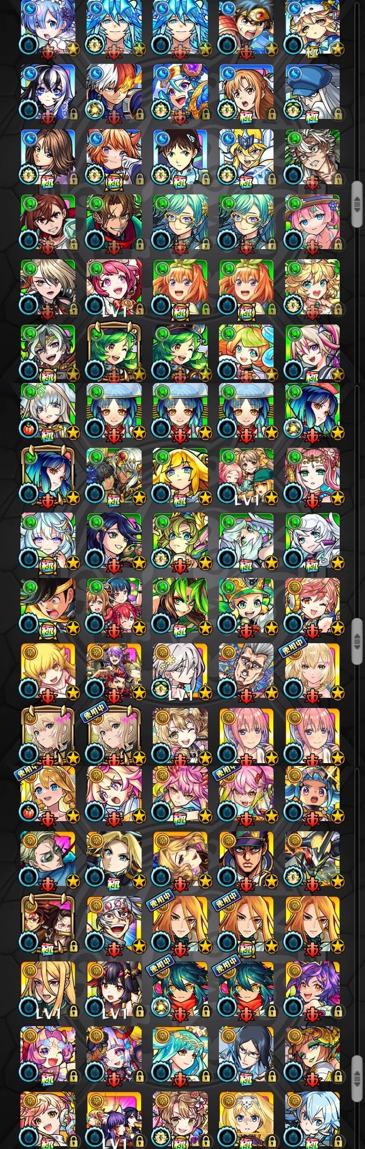 アカウント特定防止といった観点から、主なモンスターを抜粋して記載させていただいております。