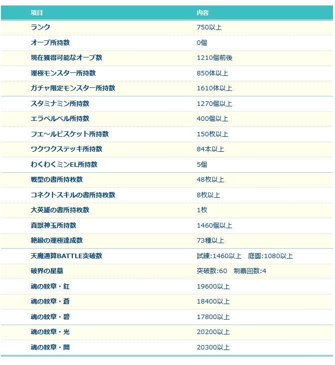 アカウント特定防止といった観点から、主なモンスターを抜粋して記載させていただいております。