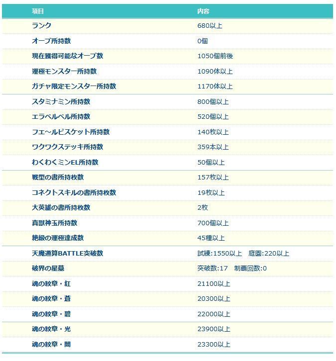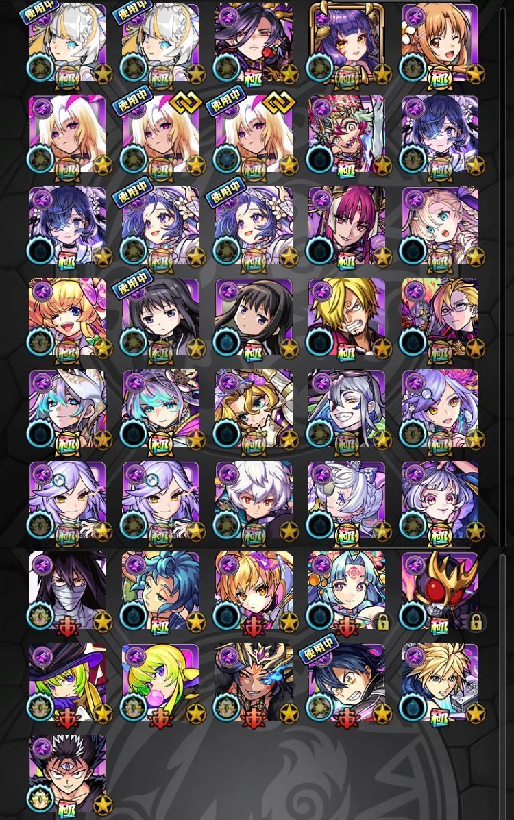 アカウント特定防止といった観点から、主なモンスターを抜粋して記載させていただいております。