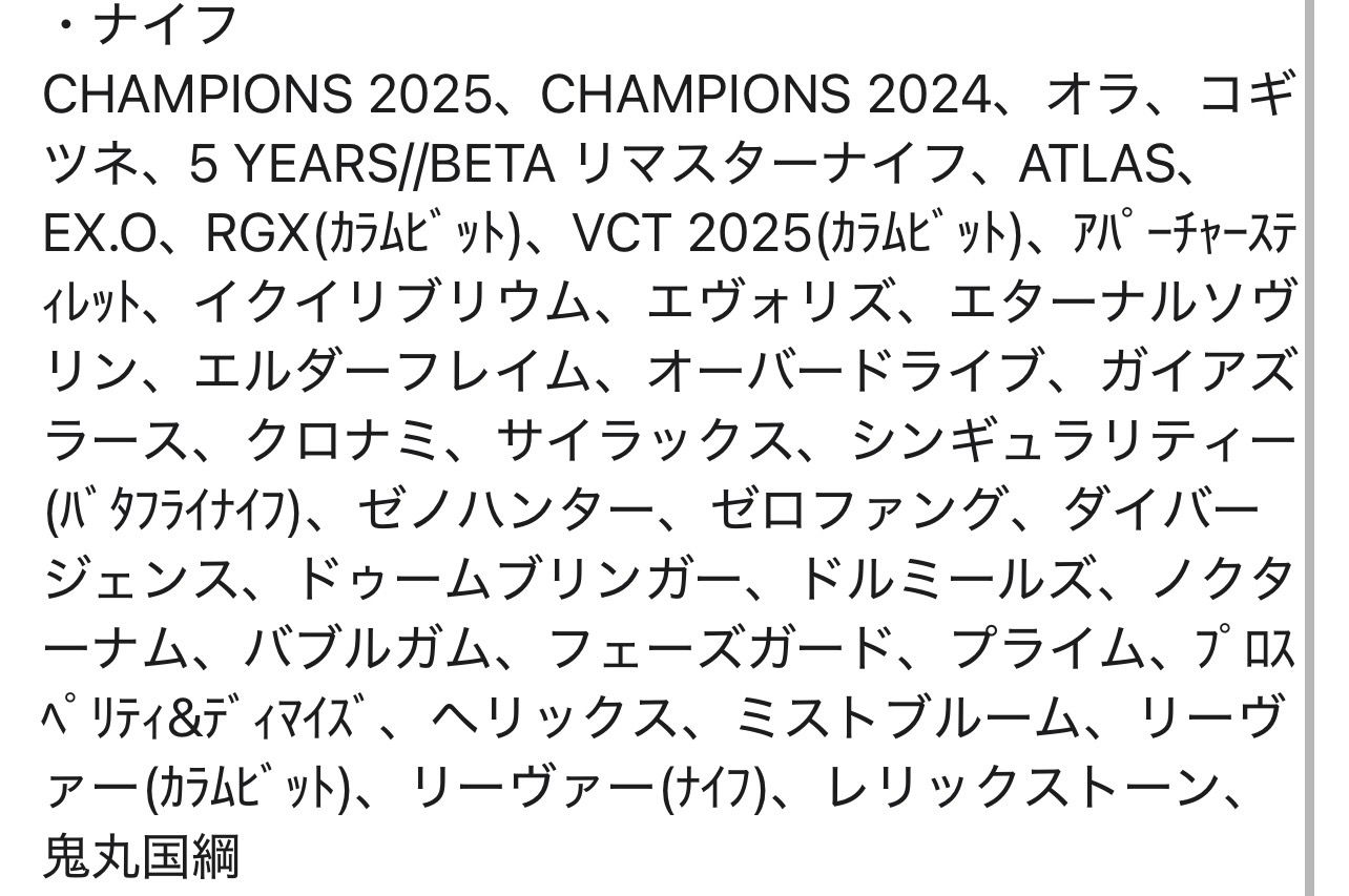 掲載されていない部分のスキンやバディについてご質問があればお答えいたします。