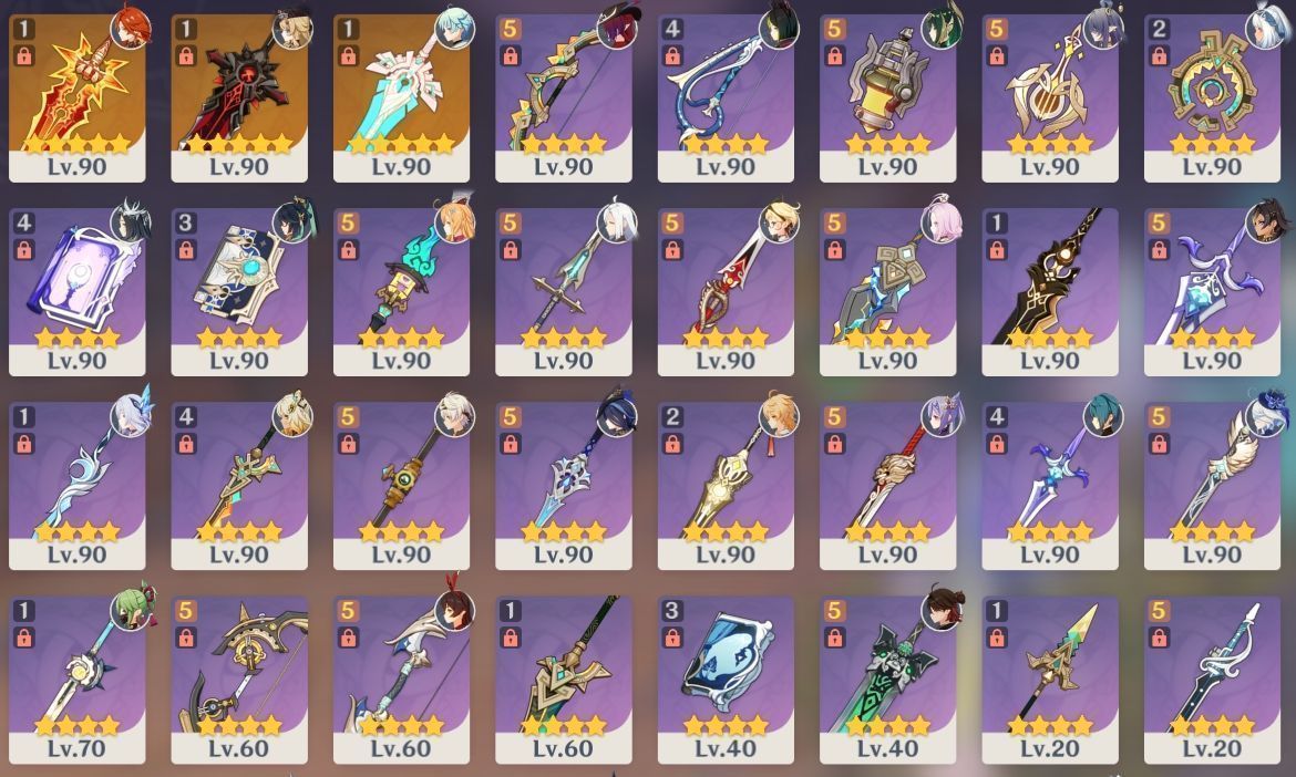 下記のようなキャラクター・武器を所持しております。(一部抜粋)