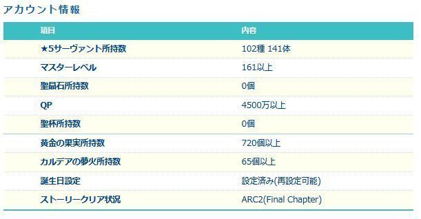 重複分は宝具強化に使用しているため、累計入手数=★5サーヴァントの宝具レベル合計値となります。