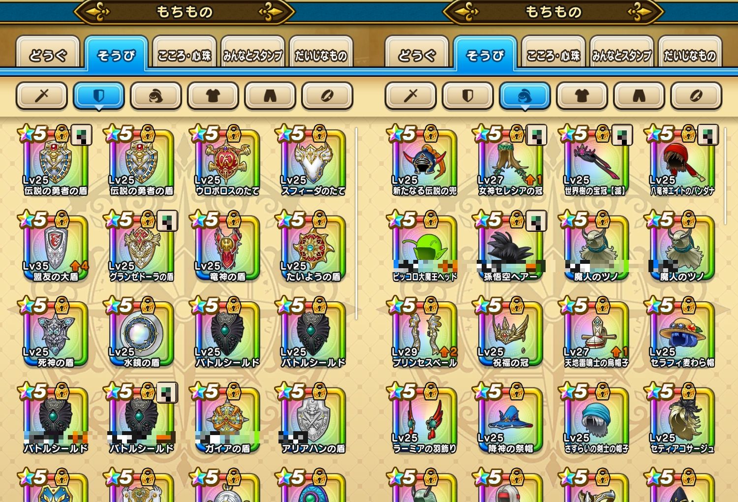 アカウント特定防止といった観点から、主な武具・こころを抜粋して記載させていただいております。