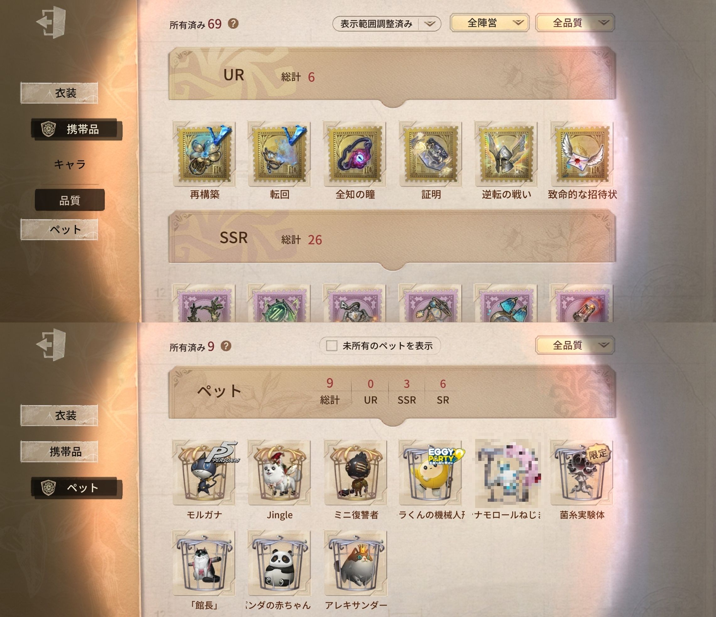 アカウント特定防止といった観点から、主な衣装を抜粋して記載させていただいております。