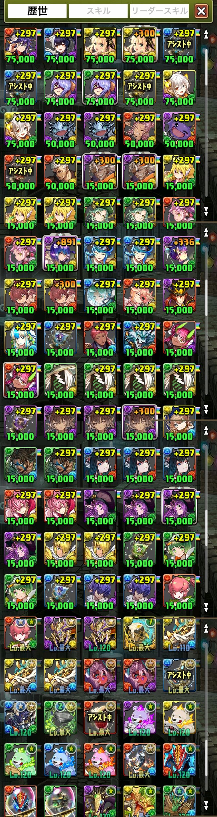 アカウント特定防止といった観点から、主なモンスターを抜粋して記載させていただいております。