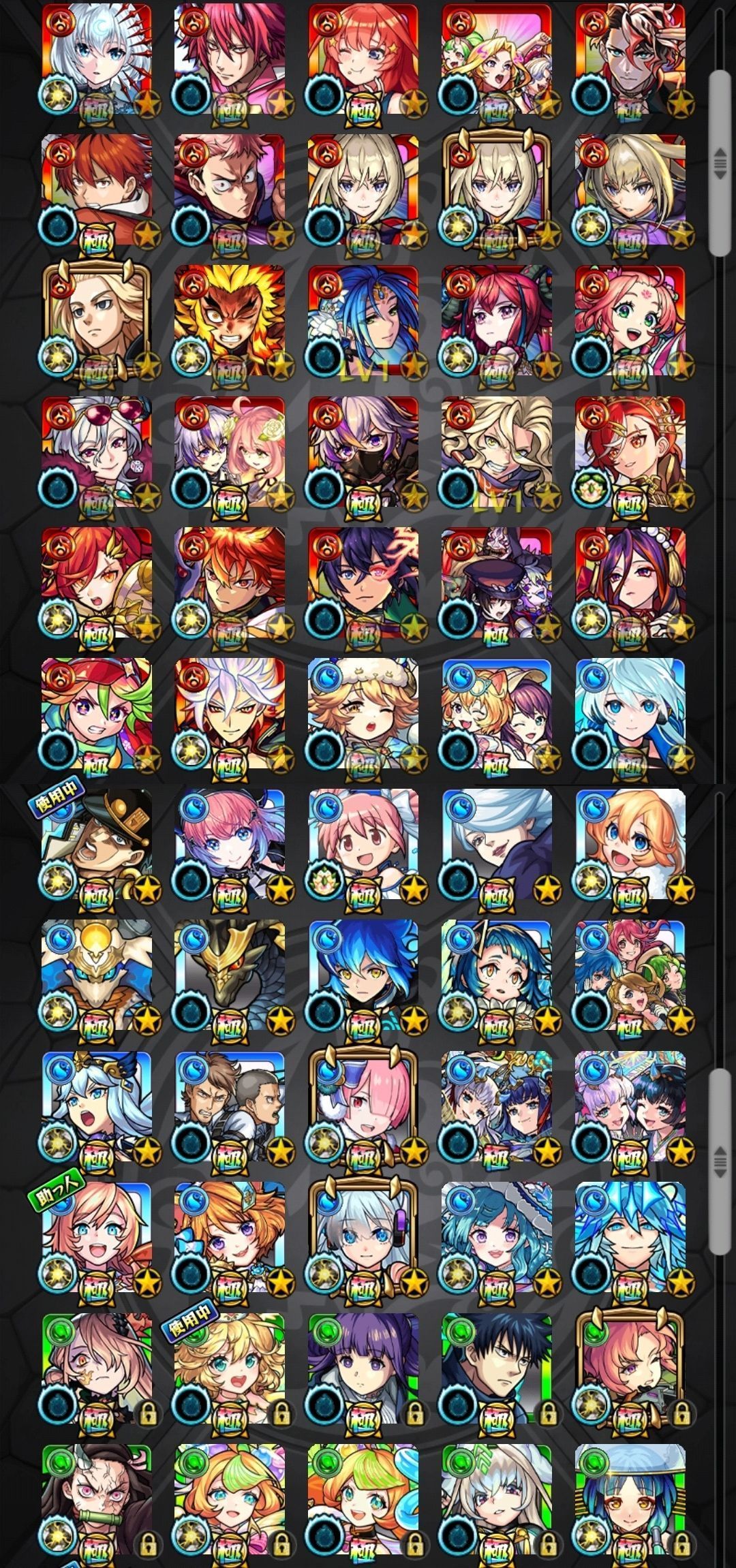 アカウント特定防止といった観点から、主なモンスターを抜粋して記載させていただいております。