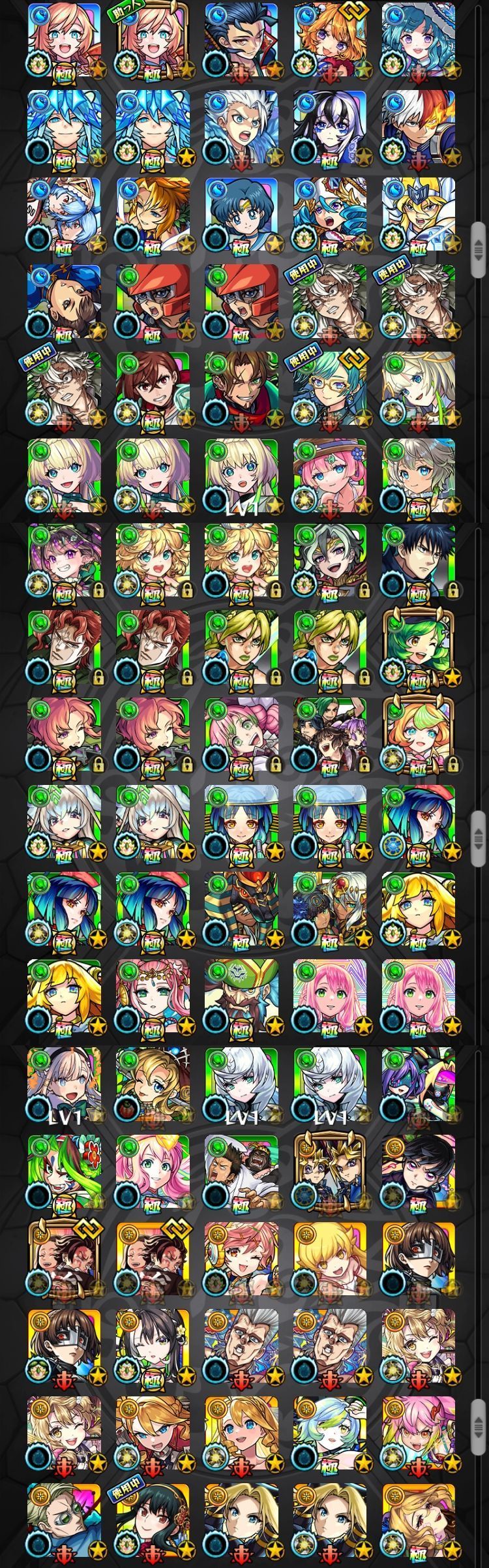 アカウント特定防止といった観点から、主なモンスターを抜粋して記載させていただいております。