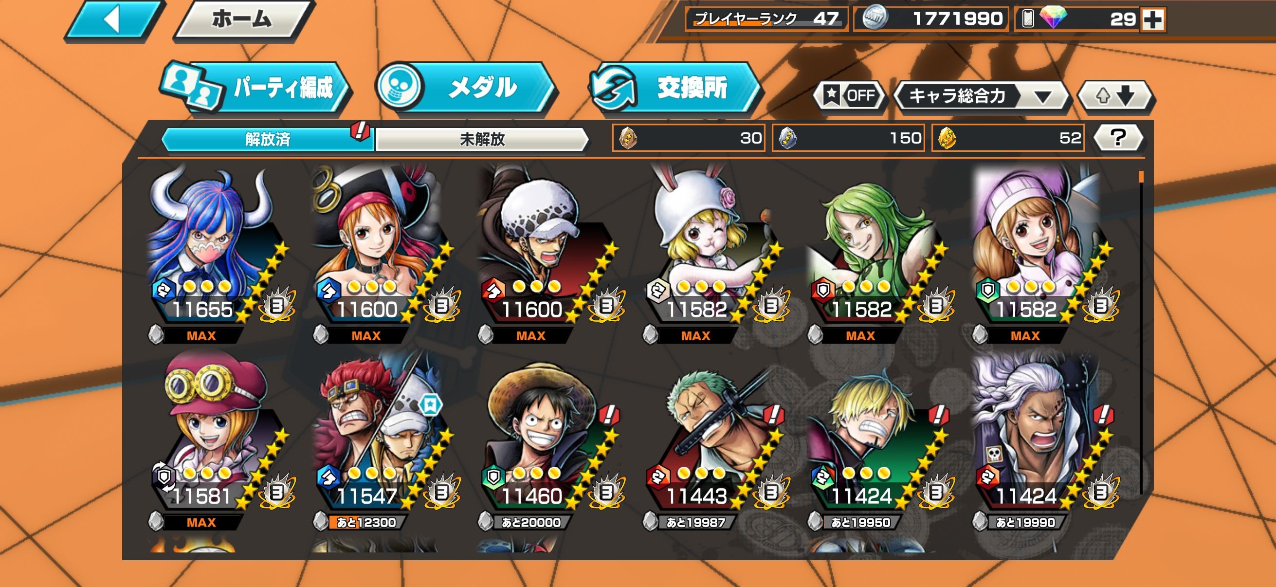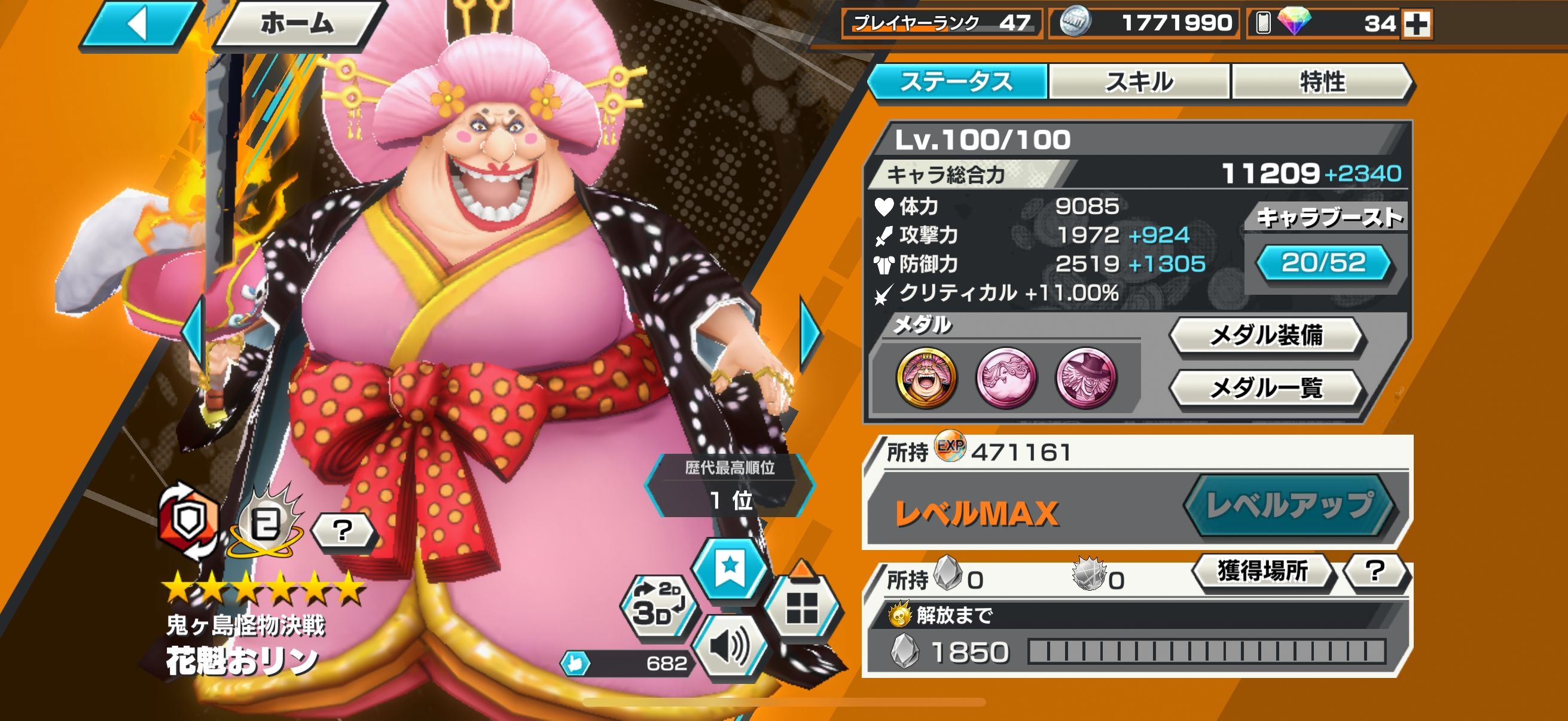 課金額が100万超でキャララン1位獲得キャラ多数います
