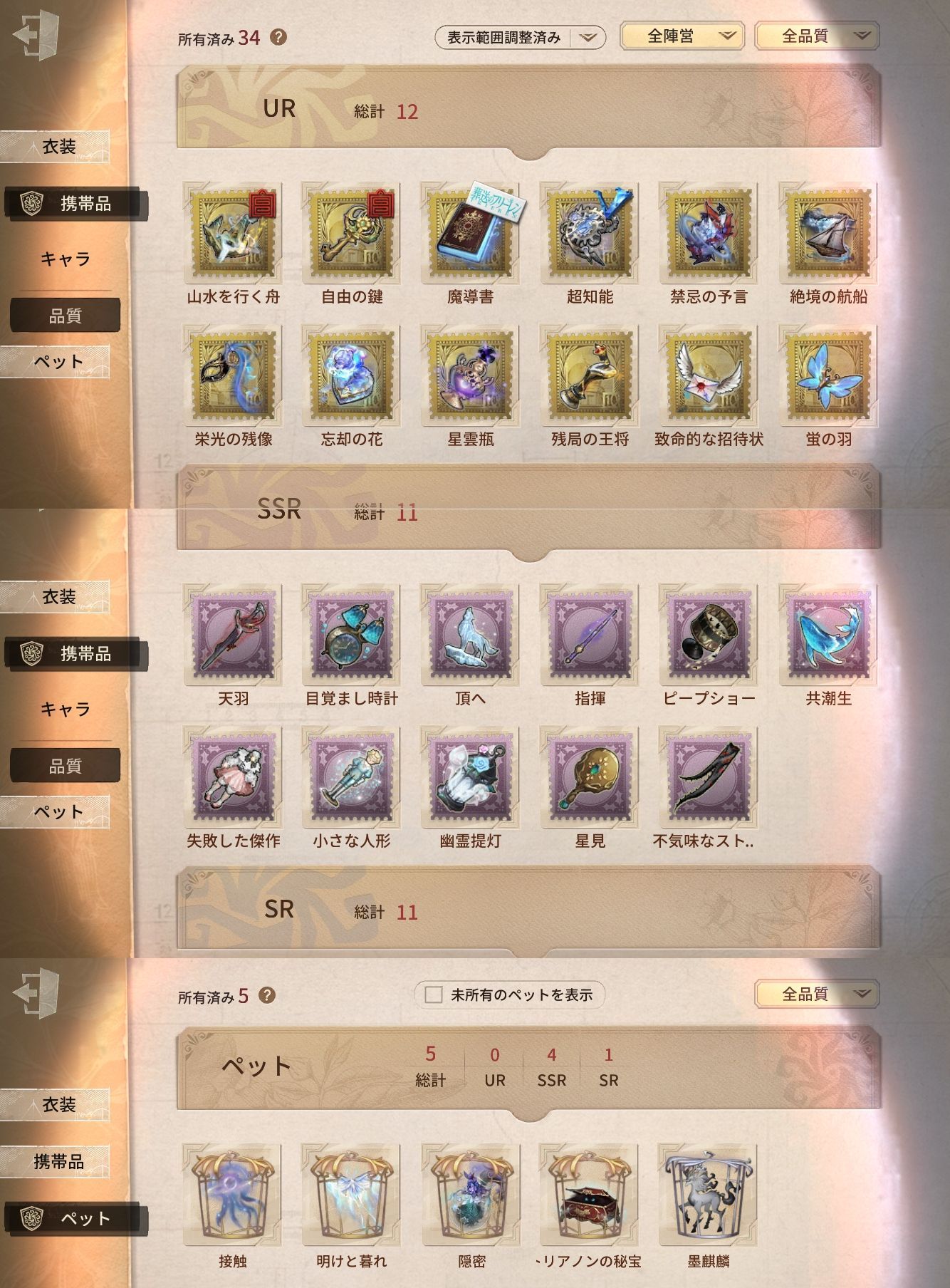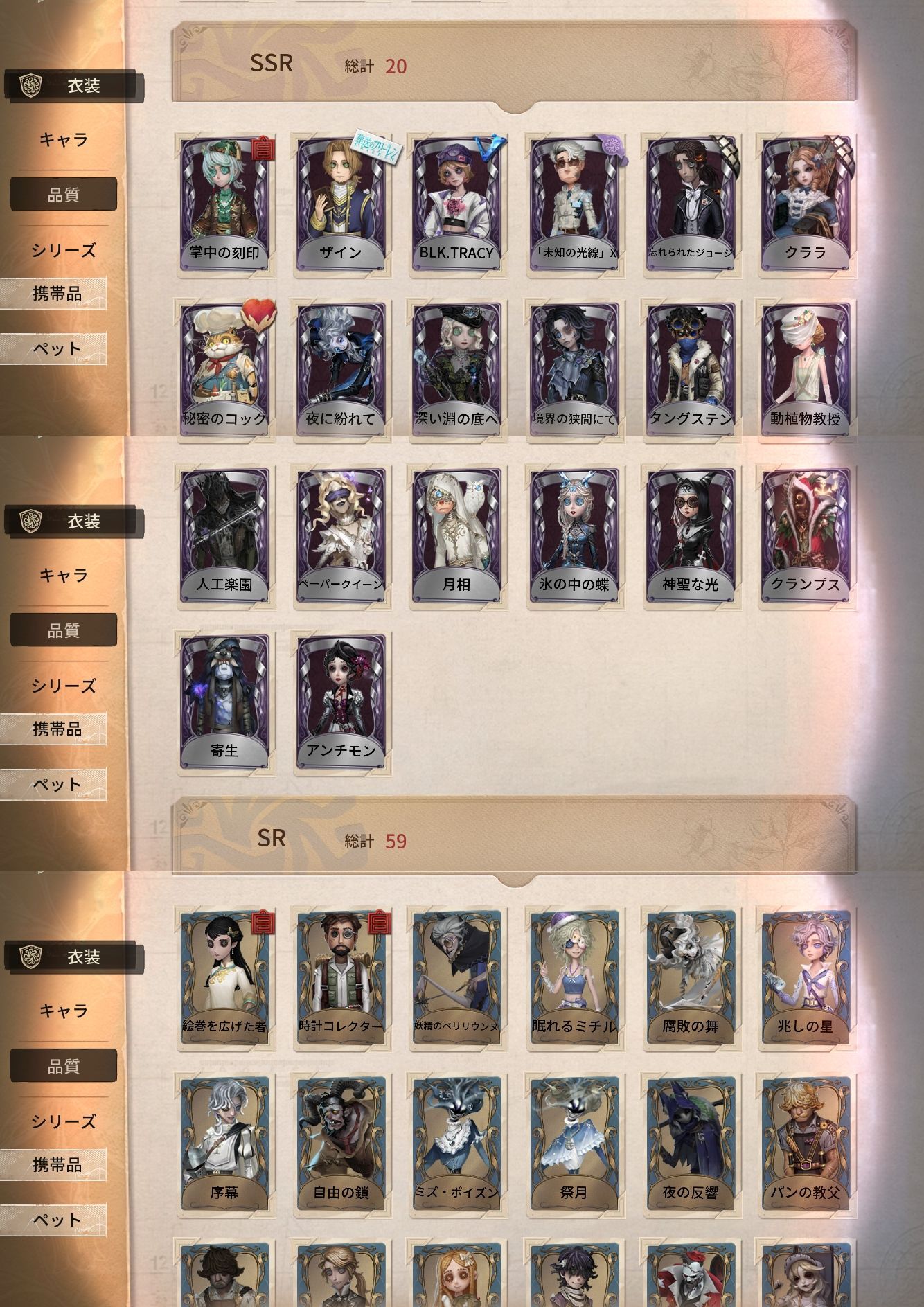 アカウント特定防止といった観点から、主な衣装を抜粋して記載させていただいております。