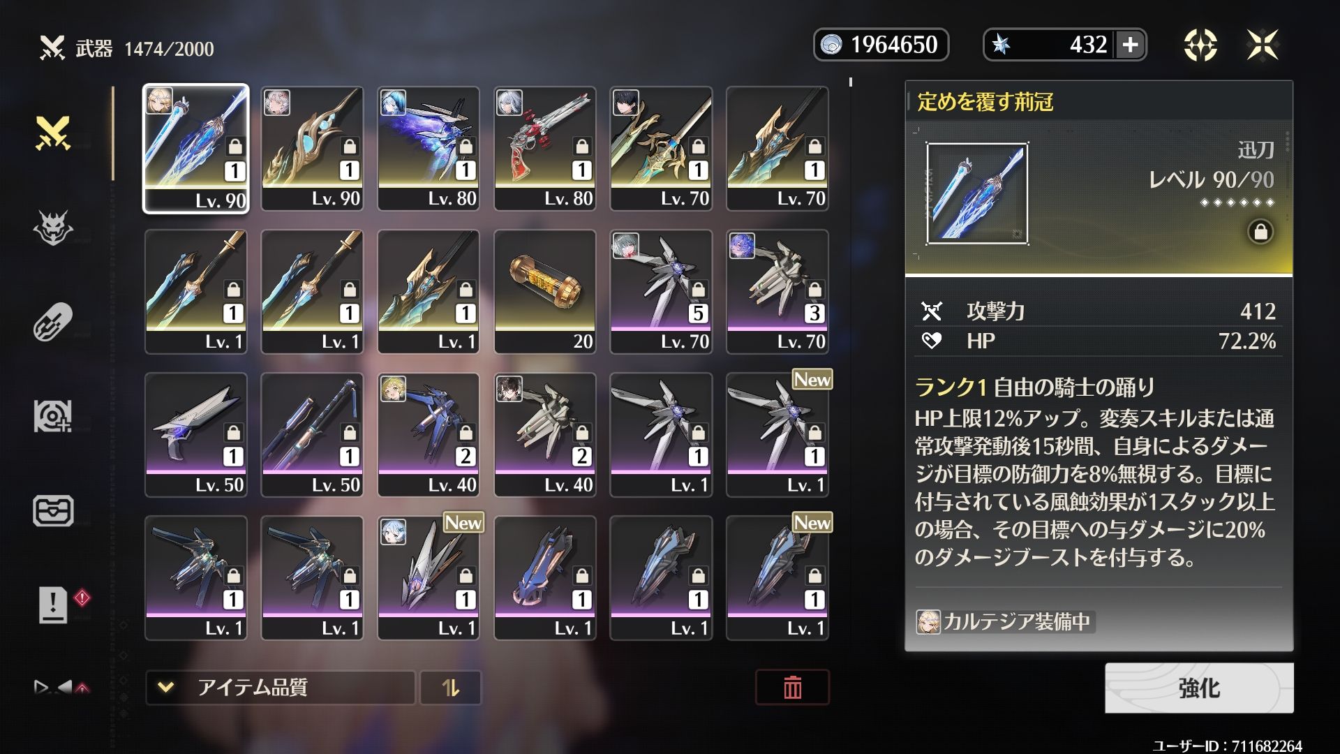 カルテジア完凸持ち武器、その他限定キャラ武器など編成キャラは厳選してありますのですぐ使えます、その他今汐の衣装など課金アイテムなど少々持ってる感じです