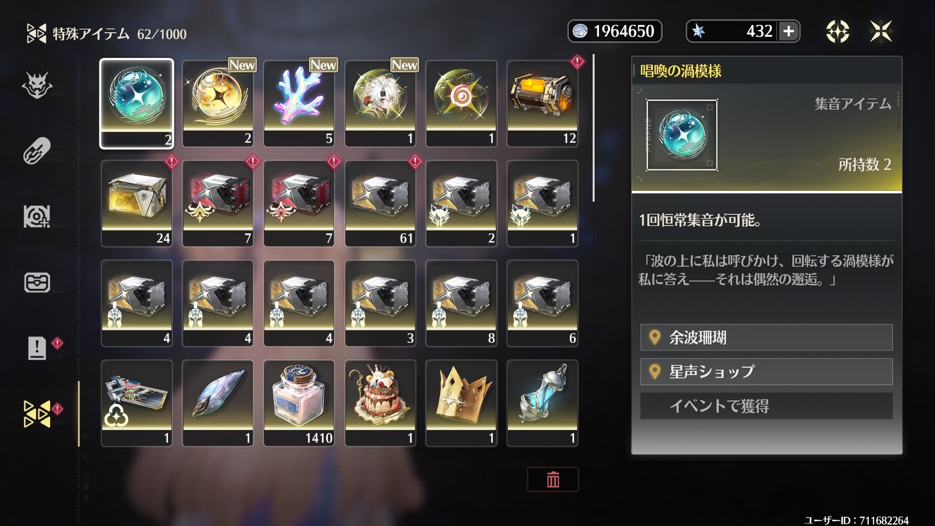 カルテジア完凸持ち武器、その他限定キャラ武器など編成キャラは厳選してありますのですぐ使えます、その他今汐の衣装など課金アイテムなど少々持ってる感じです