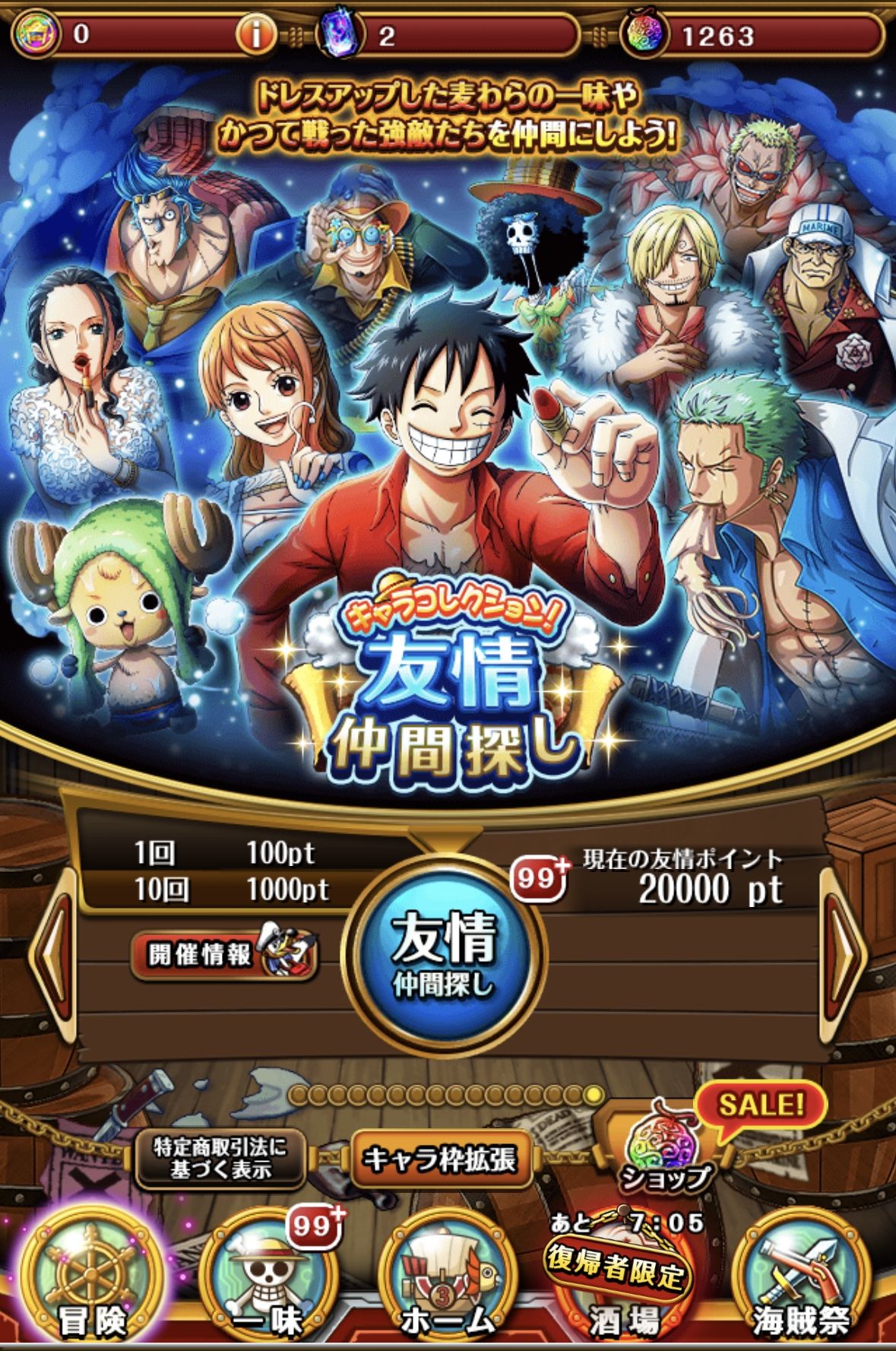 | ゲーム名 | ワンピーストレジャークルーズ(トレクル) |