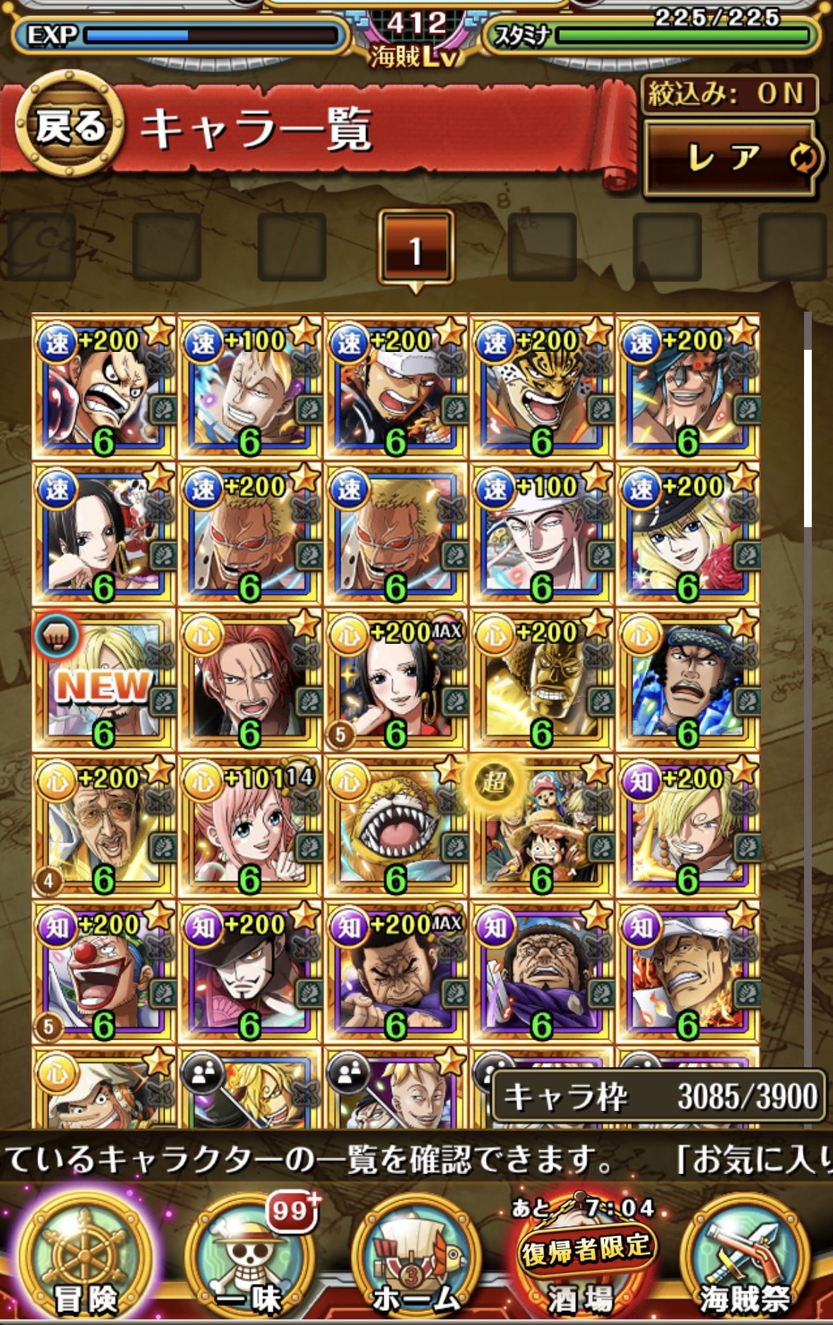 強化素材は絞り込みで非表示にしています。