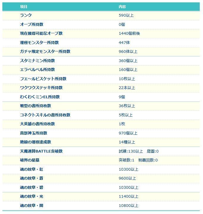 アカウント特定防止といった観点から、主なモンスターを抜粋して記載させていただいております。