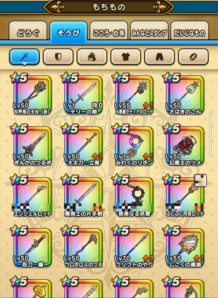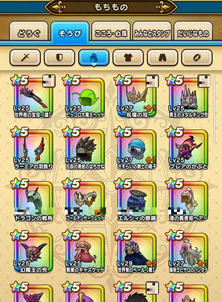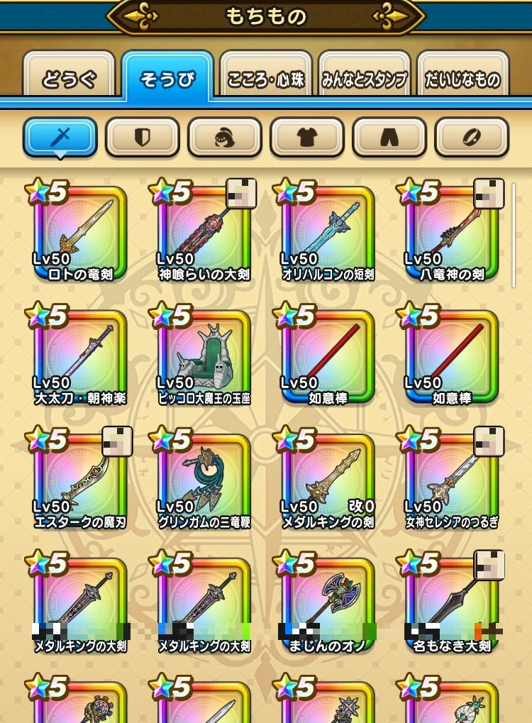 下記のようなそうびを所持しております。(一部抜粋)
