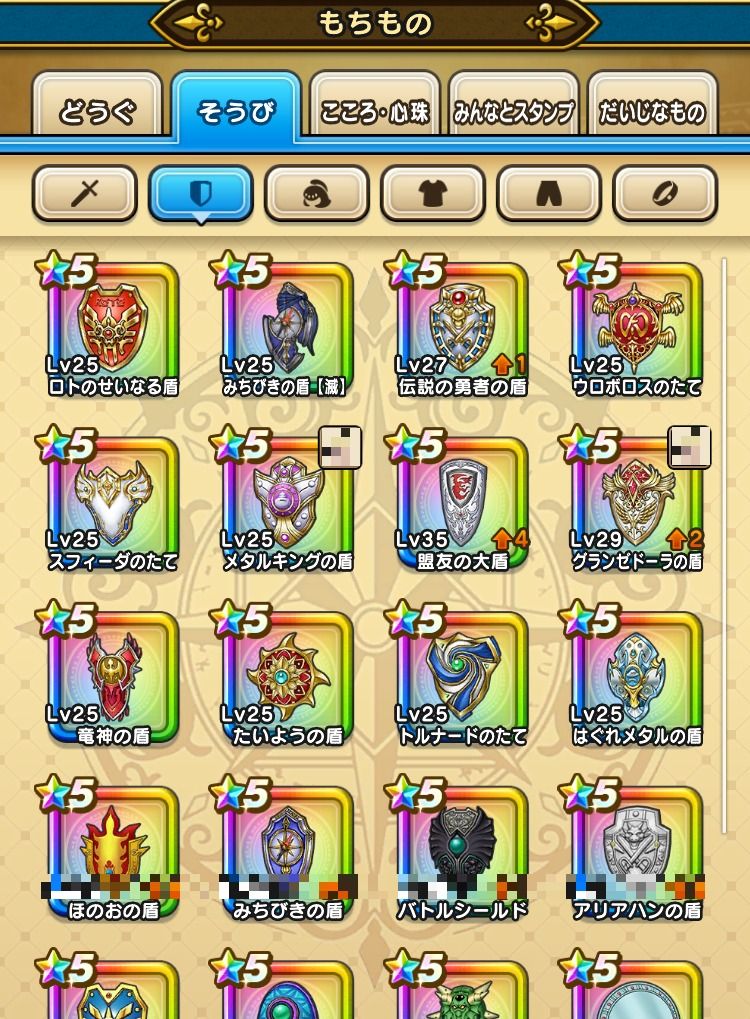 アカウント特定防止といった観点から、主な武具・こころを抜粋して記載させていただいております。