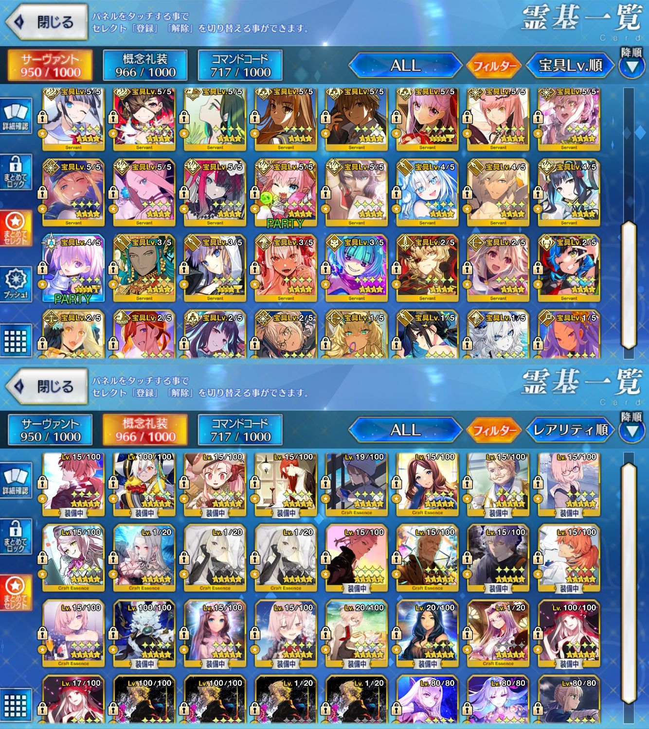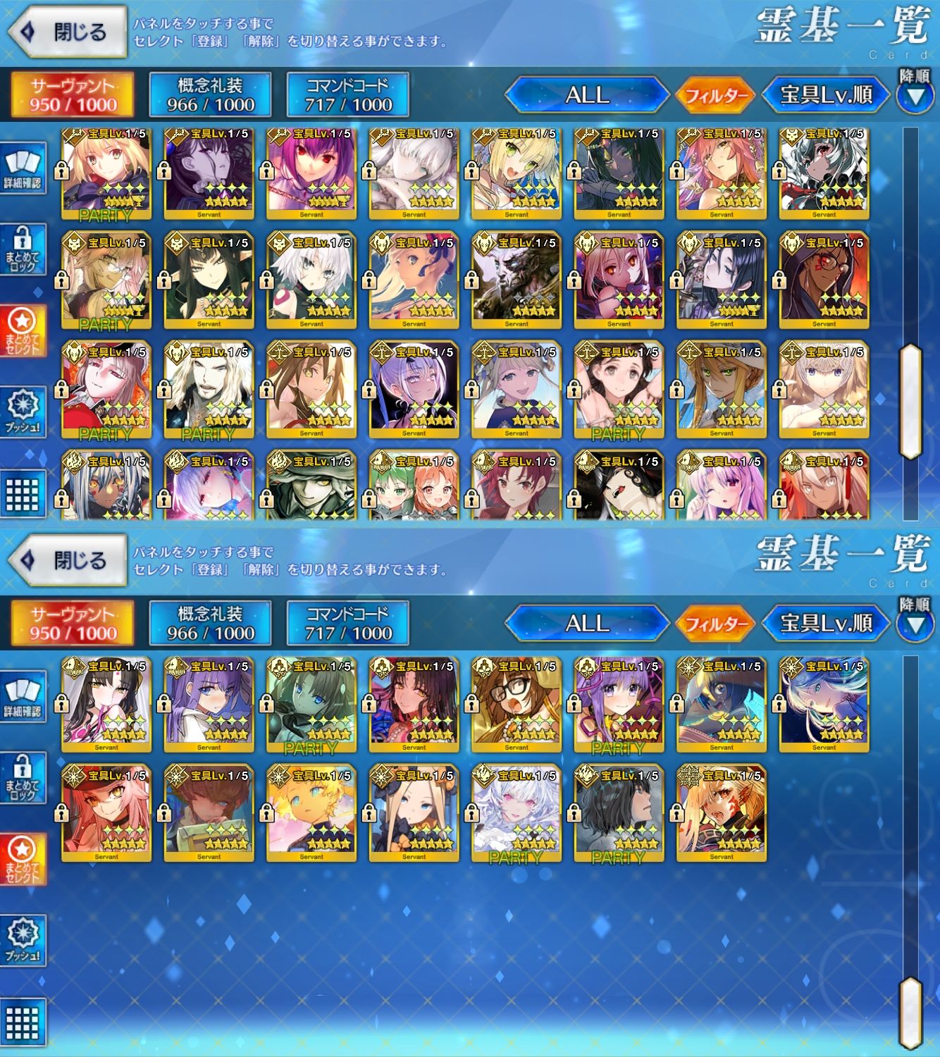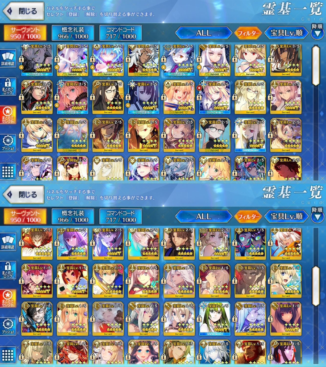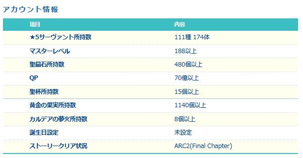 星5サーヴァントの数は累計入手数です。