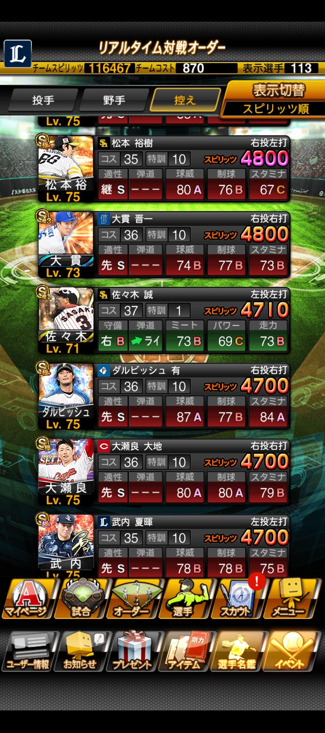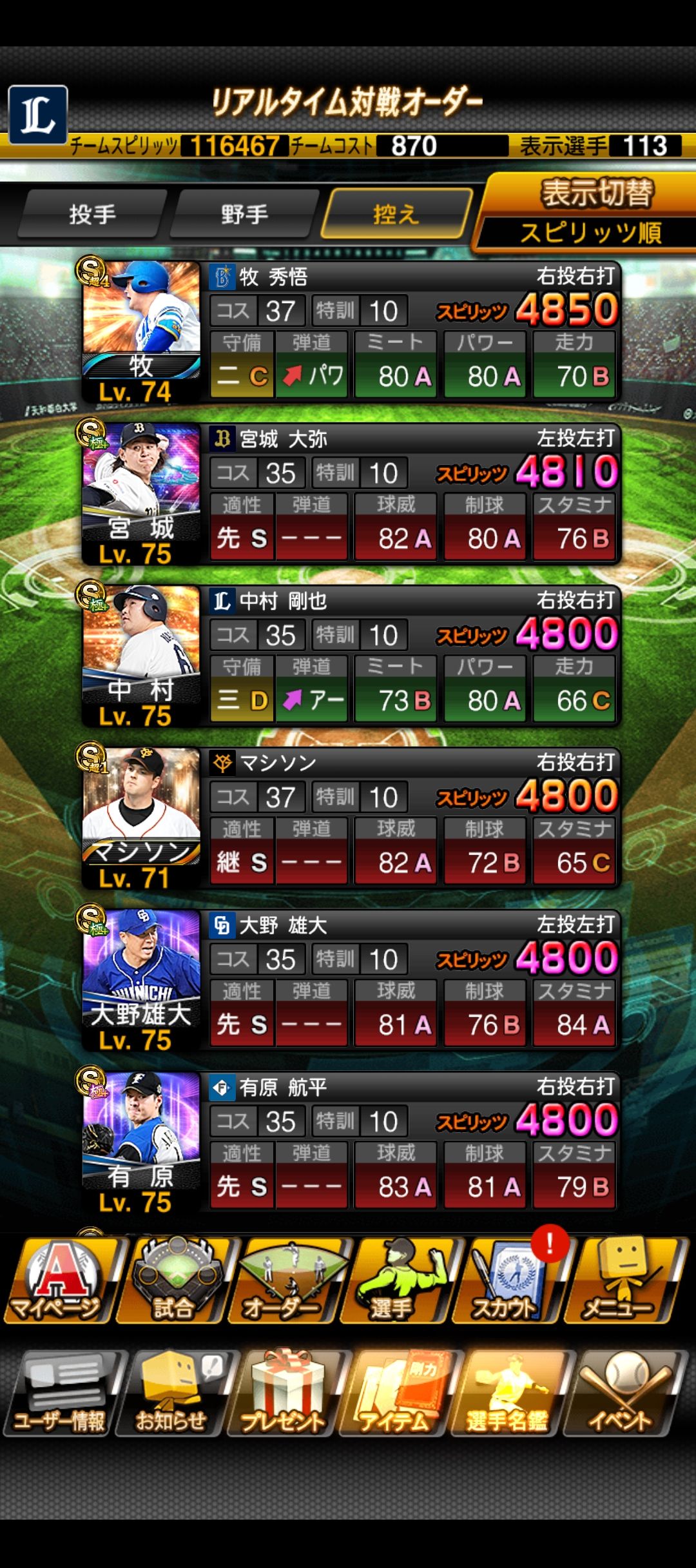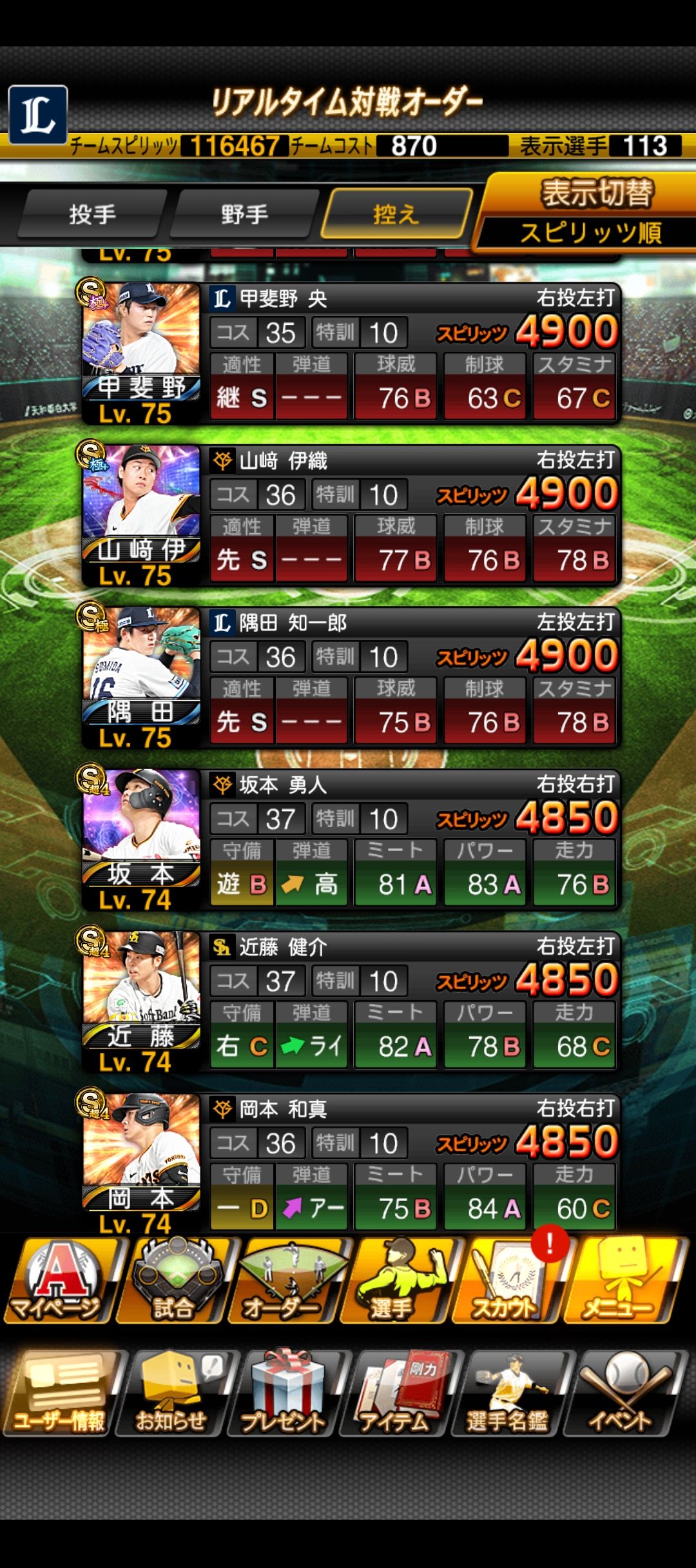 ※メイン選手の主要でない特能(例:藤浪の荒れ球等)と控え選手はレベル3の物もあります。