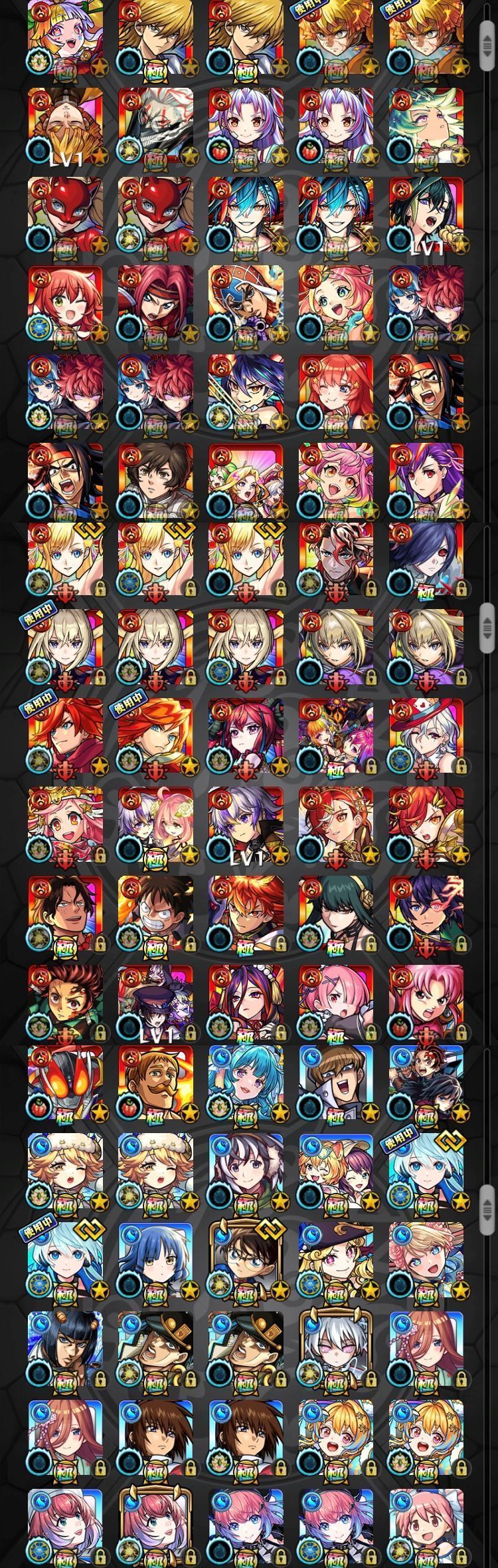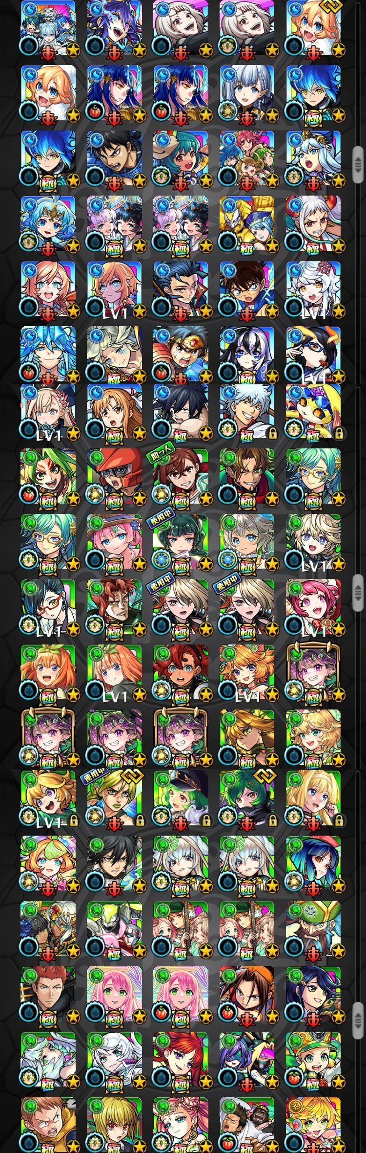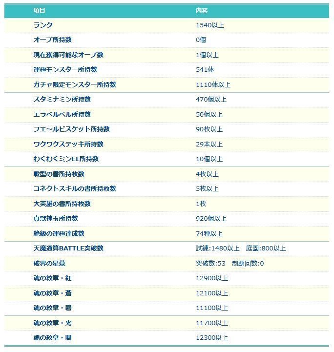 アカウント特定防止といった観点から、主なモンスターを抜粋して記載させていただいております。
