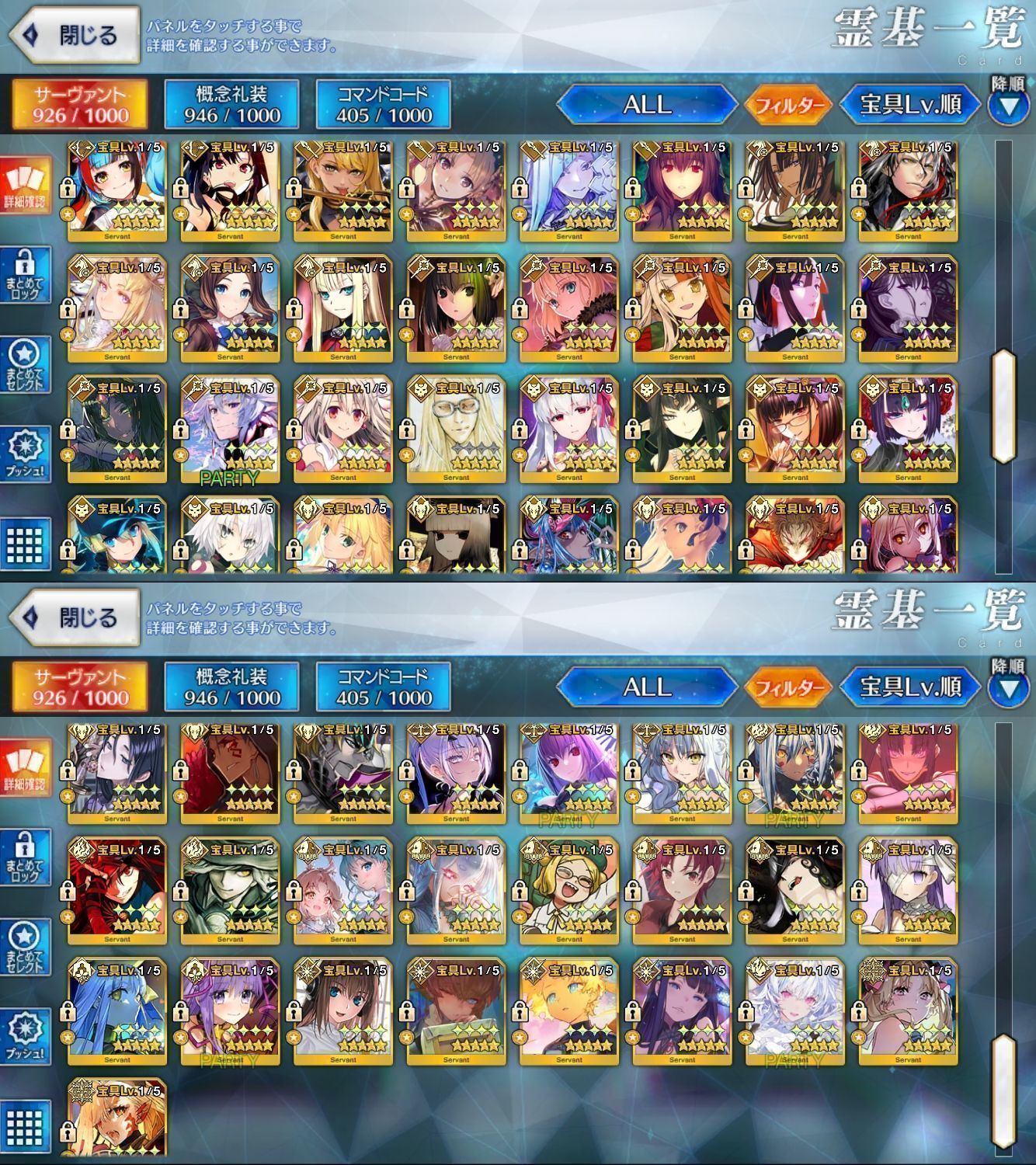 星5サーヴァントの数は累計入手数です。
