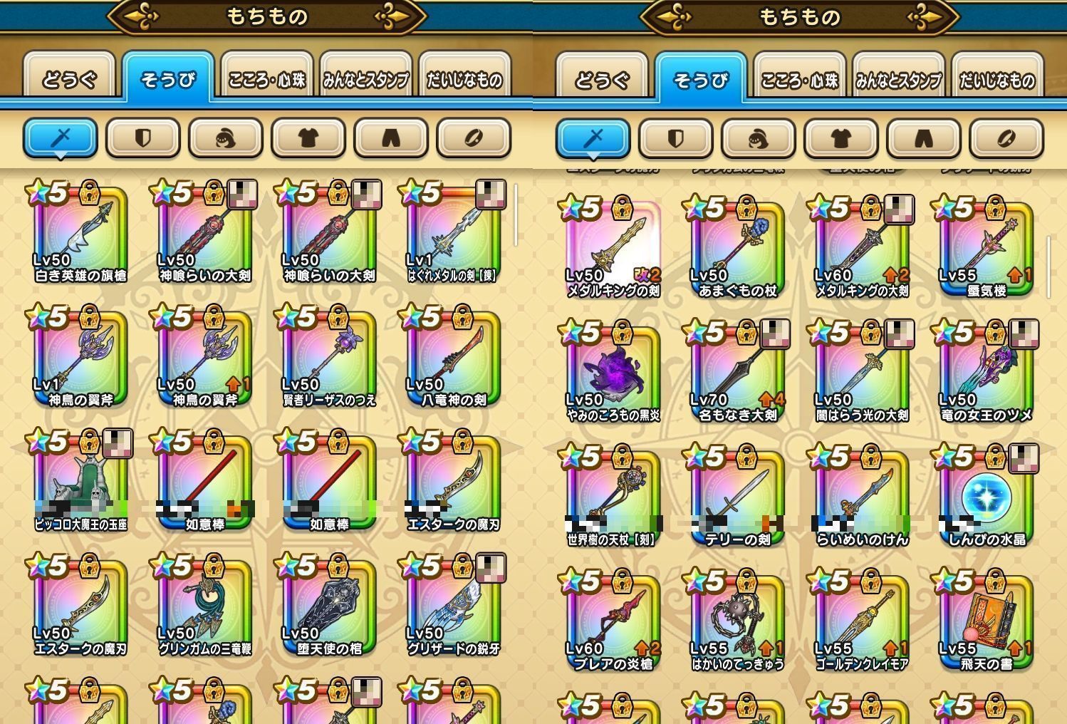 アカウント特定防止といった観点から、主な武具・こころを抜粋して記載させていただいております。