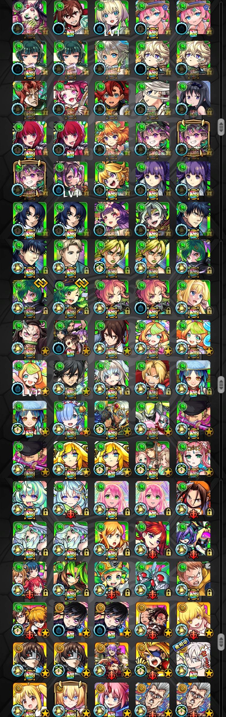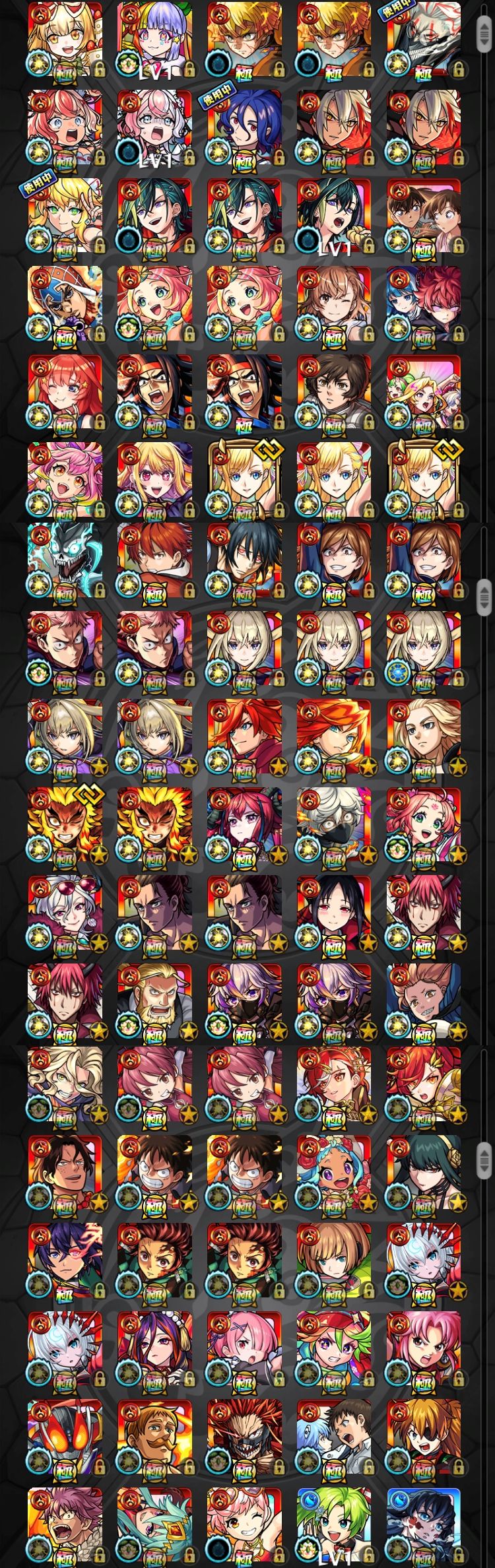 アカウント特定防止といった観点から、主なモンスターを抜粋して記載させていただいております。