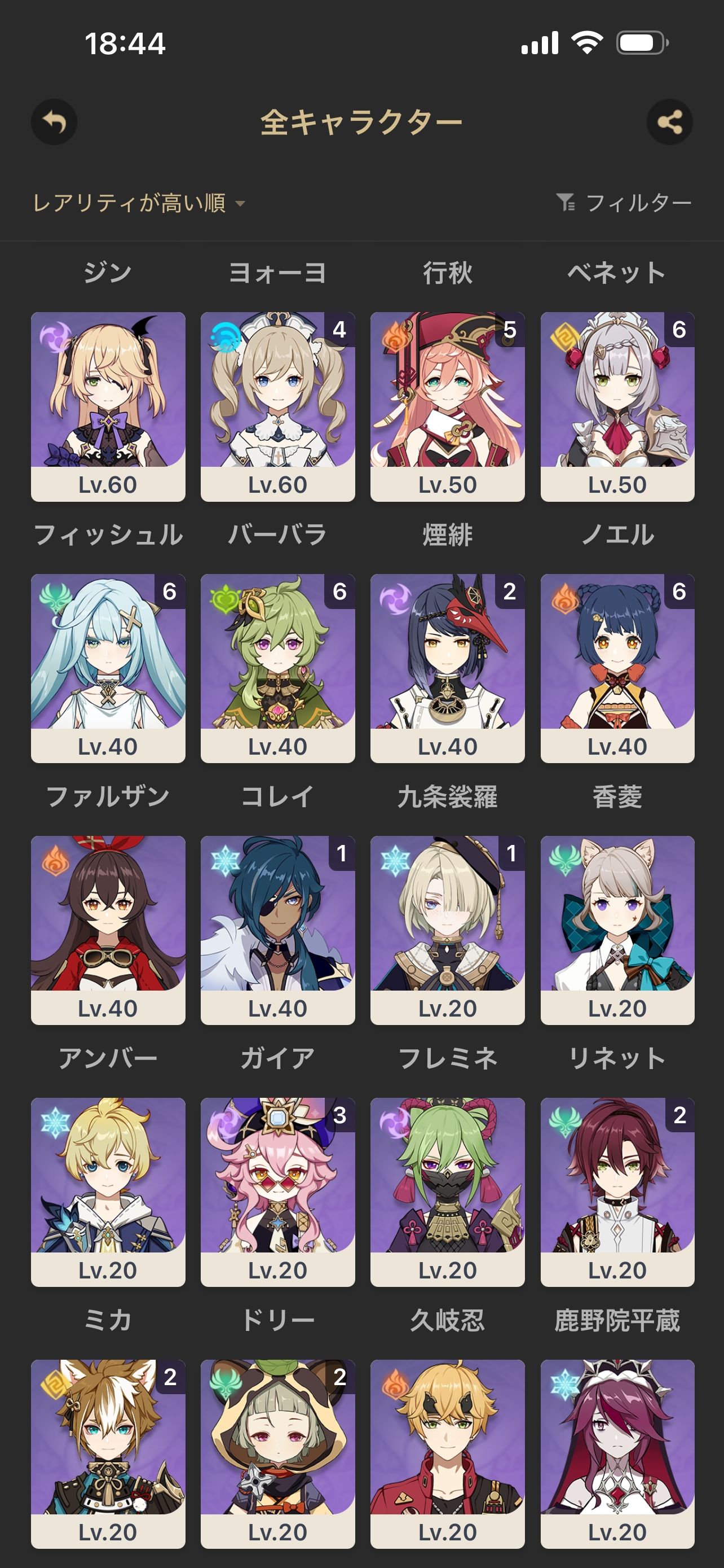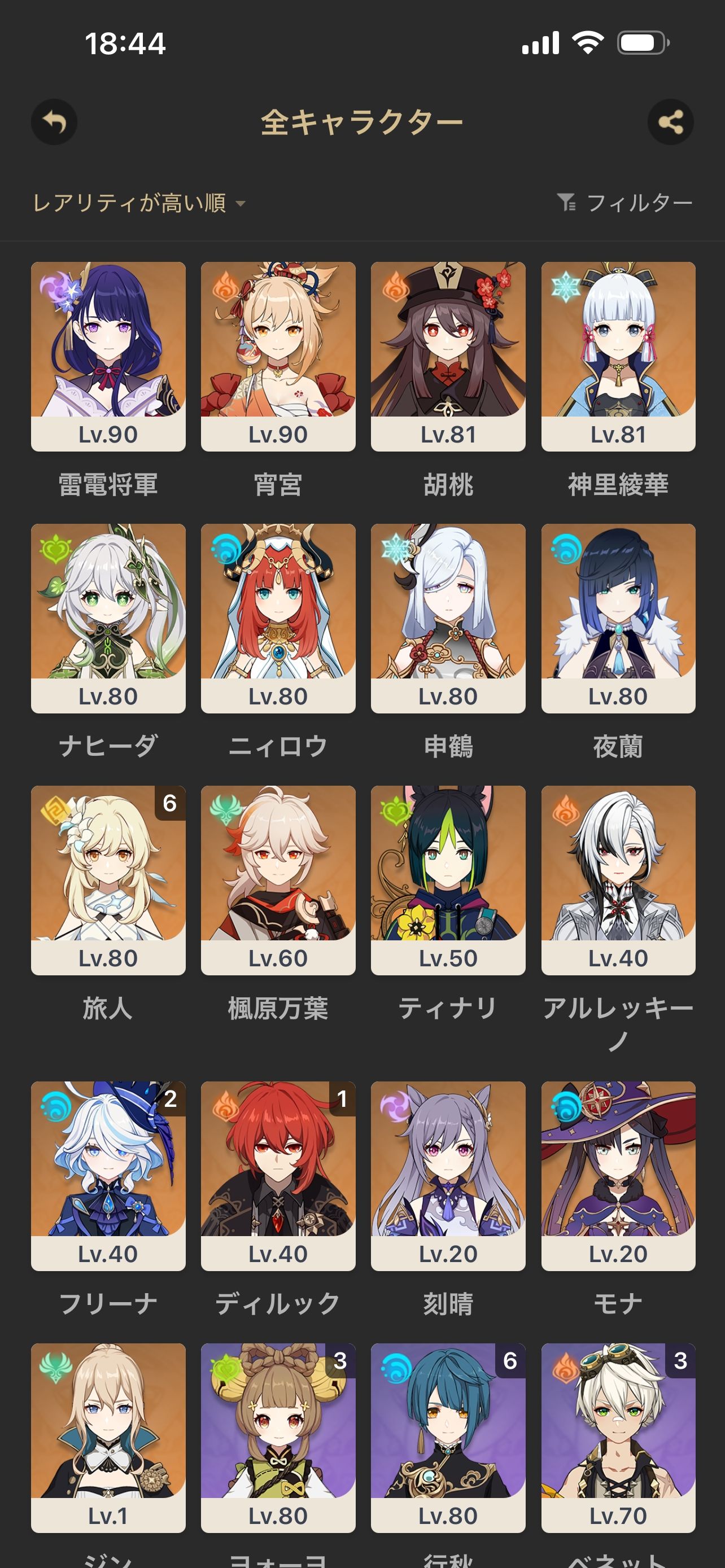 フリーナ2凸 雷電将軍無凸 宵宮無凸 胡桃無凸 神里綾華無凸 ナヒーダ無凸 ニィロウ無凸 申鶴無凸 夜蘭無凸 椛原万葉無凸 アルレッキーノ無凸