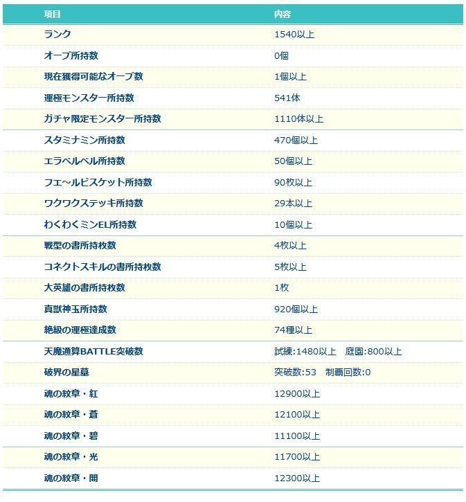 アカウント特定防止といった観点から、主なモンスターを抜粋して記載させていただいております。