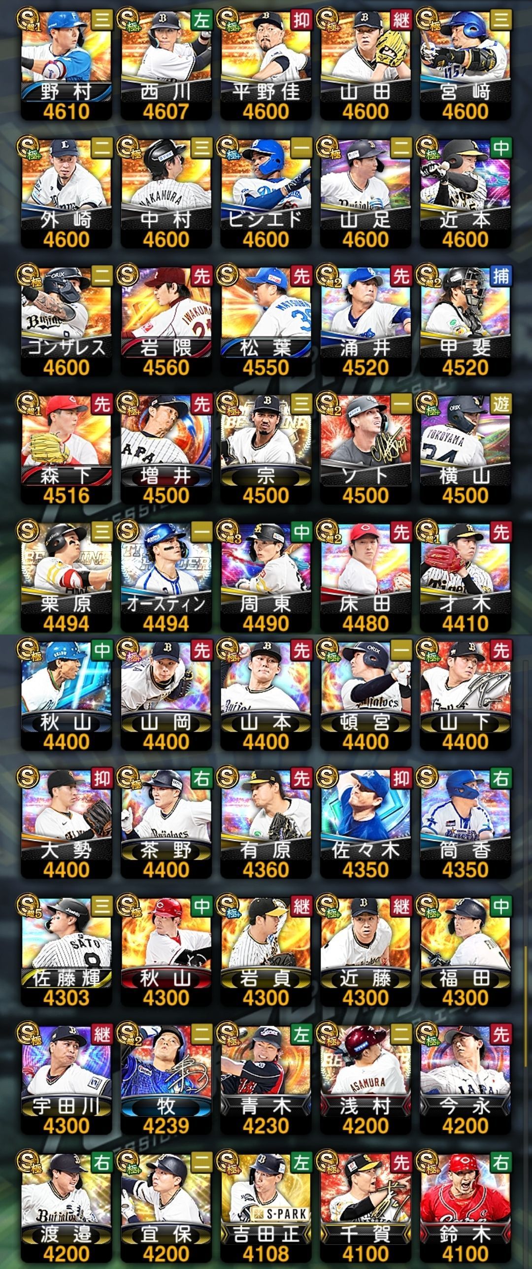 アカウント特定防止といった観点から、主な選手を抜粋して記載させていただいております。