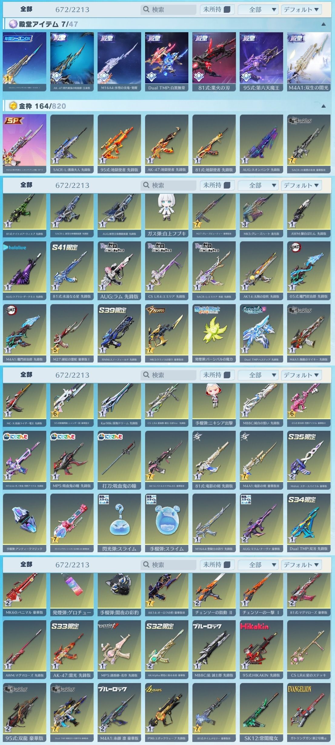 アカウント特定防止といった観点から主なスキンを抜粋して掲載しております。