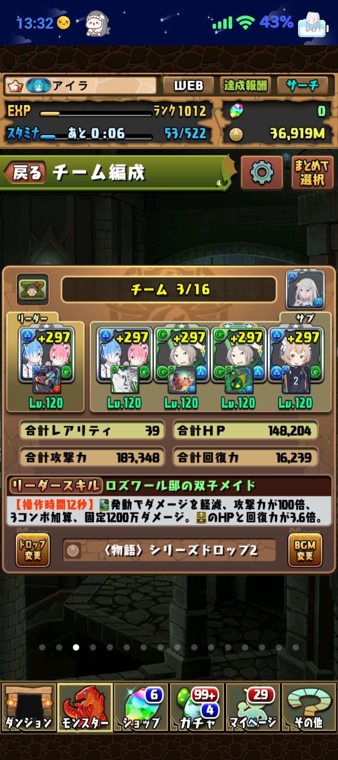 | ゲーム名 | パズドラ |